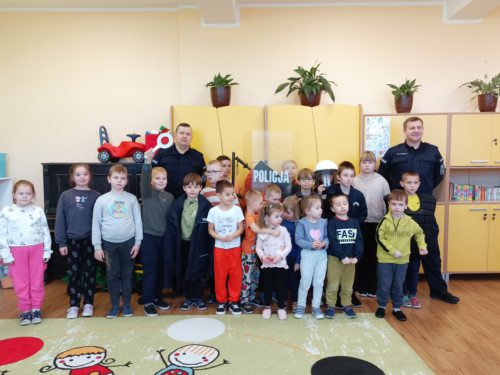 W czwartek naszą szkołę odwiedzili funkcjonariusze Marek Jasnoch i Tomasz Goncz z Komisariatu Policji w Czersku, którzy przeprowadzili zajęcia edukacyjne dla uczniów. Spotkanie miało na celu przybliżenie dzieciom zasad bezpieczeństwa oraz pokazanie, jak wygląda codzienna praca policjanta. Podczas zajęć dzieci poznały podstawowe zasady bezpiecznego poruszania się po drodze, dowiedziały się, jak reagować w sytuacjach zagrożenia oraz dlaczego warto dbać o własne bezpieczeństwo. Policjanci opowiadali także o swojej służbie, prezentując elementy umundurowania i wyposażenia. Największą atrakcją dla dzieci była możliwość przymierzenia części policyjnego sprzętu. Dzięki takiej wizycie dzieci nie tylko poszerzyły swoją wiedzę, ale także nabrały większej świadomości na temat bezpieczeństwa i roli policji w społeczeństwie.