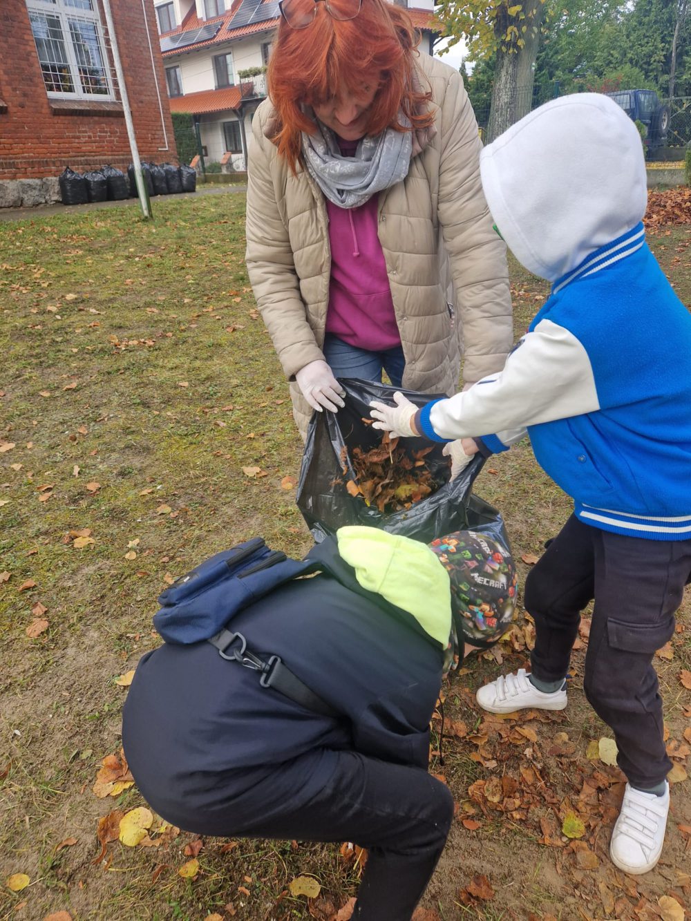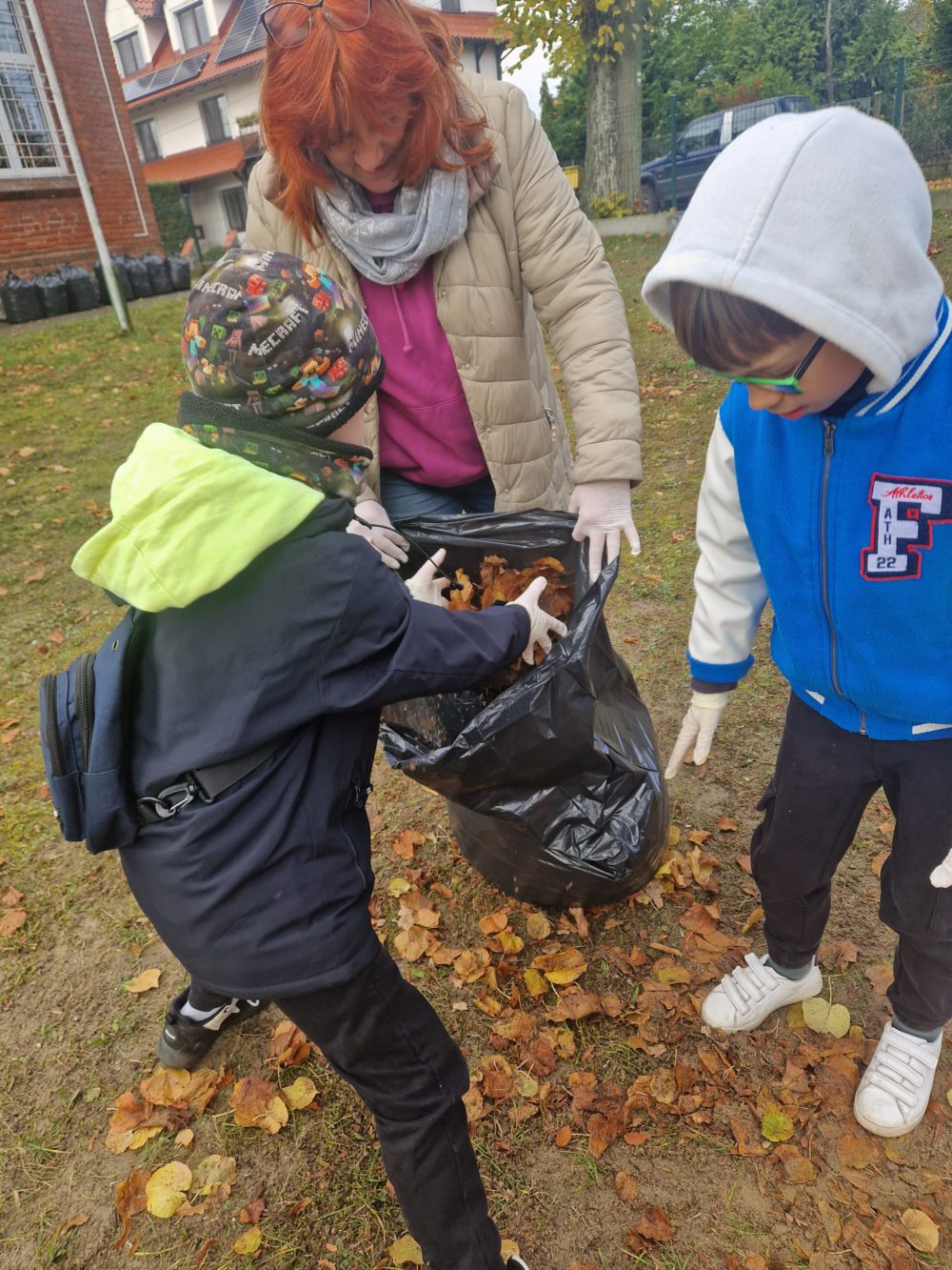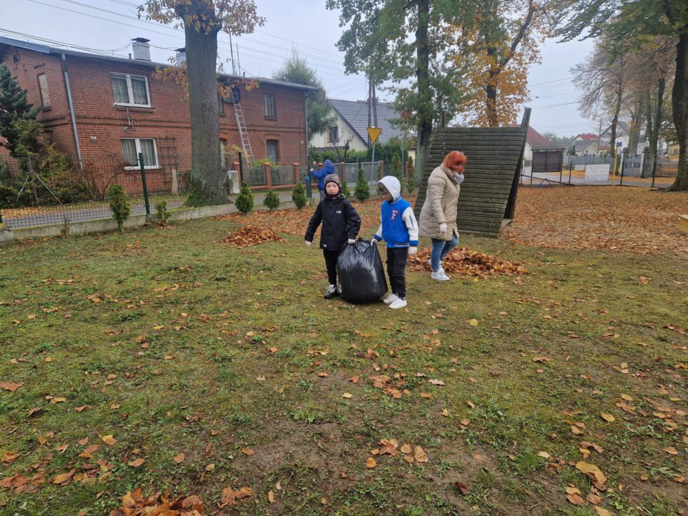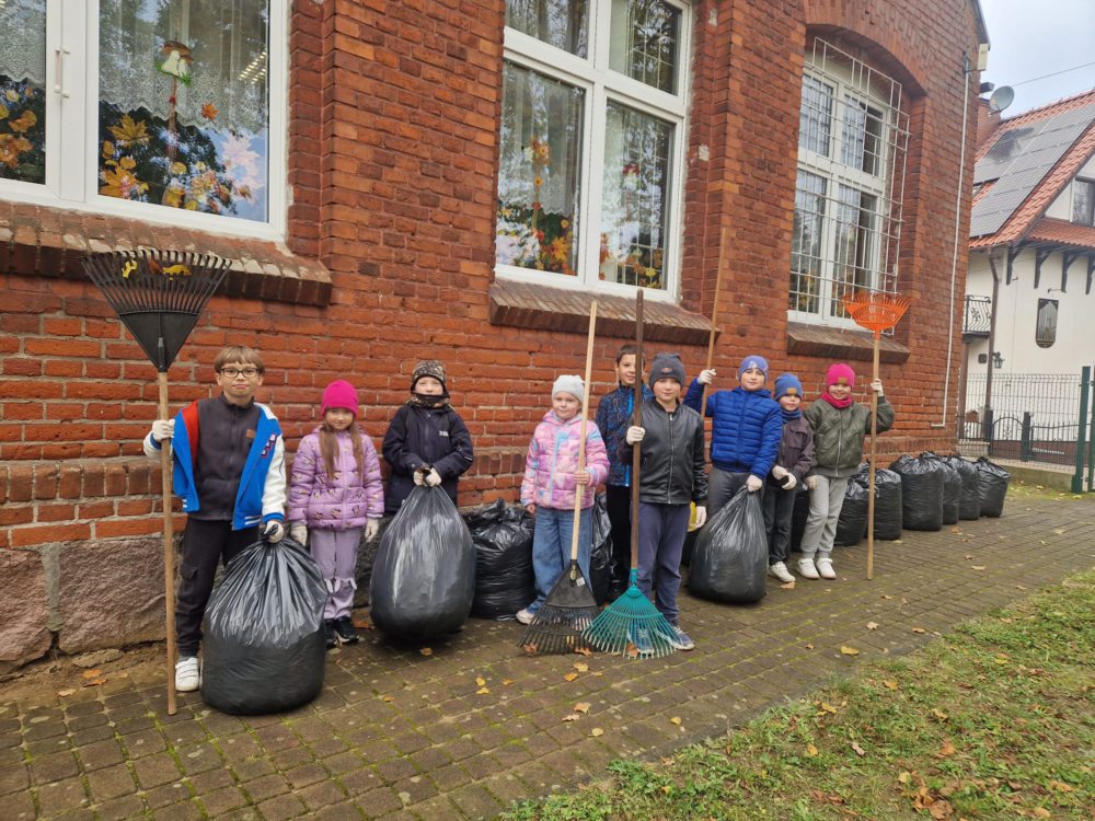 Z wielką radością informujemy o udziale naszych uczniów w tegorocznej akcji jesiennego sprzątania terenu szkoły! Mimo chłodu, z uśmiechem i wielkim zaangażowaniem, nasi mali pomocnicy chwycili za grabie i ruszyli do pracy, aby pozbyć się opadłych liści. Wspólna praca to doskonała okazja do nauki odpowiedzialności, pracy zespołowej oraz dbałości o środowisko naturalne. Jak widać na zdjęciach, wszyscy uczniowie podeszli do zadania z wielkim entuzjazmem. Efektem ich starań jest kilkanaście czarnych worków wypełnionych liśćmi oraz czysty i schludny teren wokół szkoły.