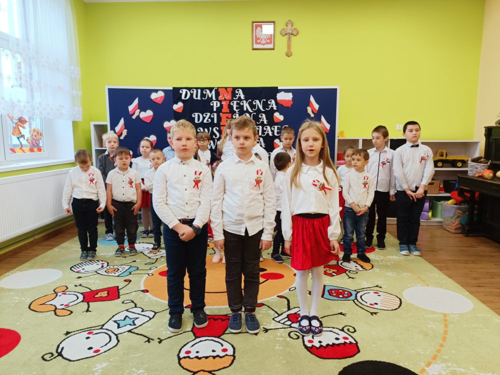 W piątek, 7 listopada, w naszej szkole odbył się uroczysty apel z okazji Narodowego Święta Niepodległości. Uczniowie zaprezentowali piękny program artystyczny, upamiętniający 11 listopada, dzień, w którym Polska po 123 latach niewoli odzyskała wolność. Podczas występu dzieci przedstawiły wiersze i piosenki o tematyce patriotycznej, a całość dopełniły biało-czerwone stroje oraz dekoracje w barwach narodowych. Na tle przygotowanej scenografii pojawiły się hasła przypominające o najważniejszych wartościach, takich jak duma, wolność, odwaga i miłość do ojczyzny.