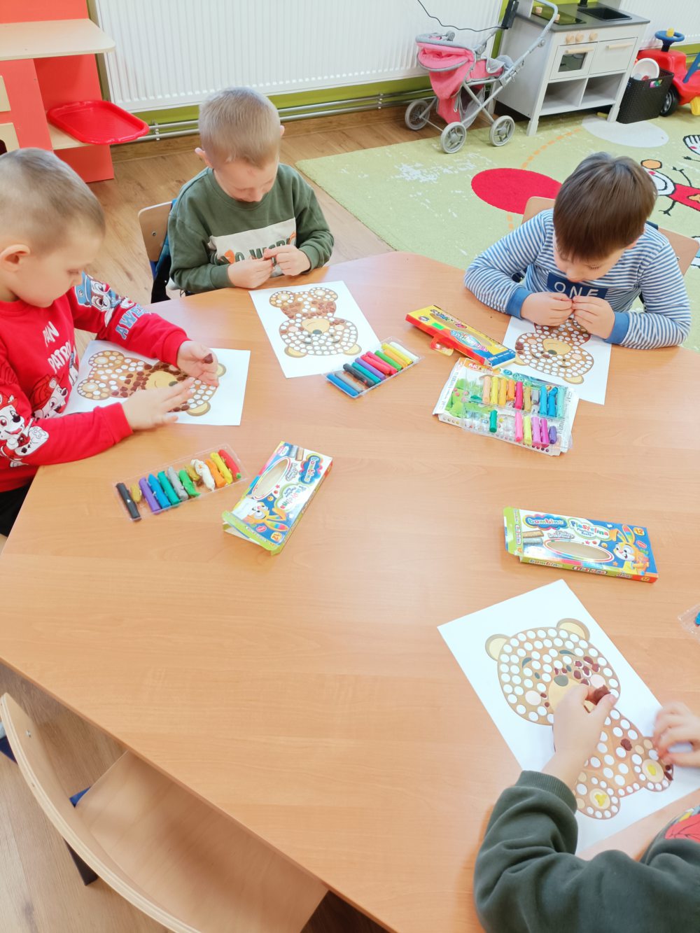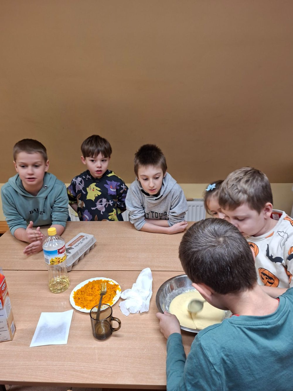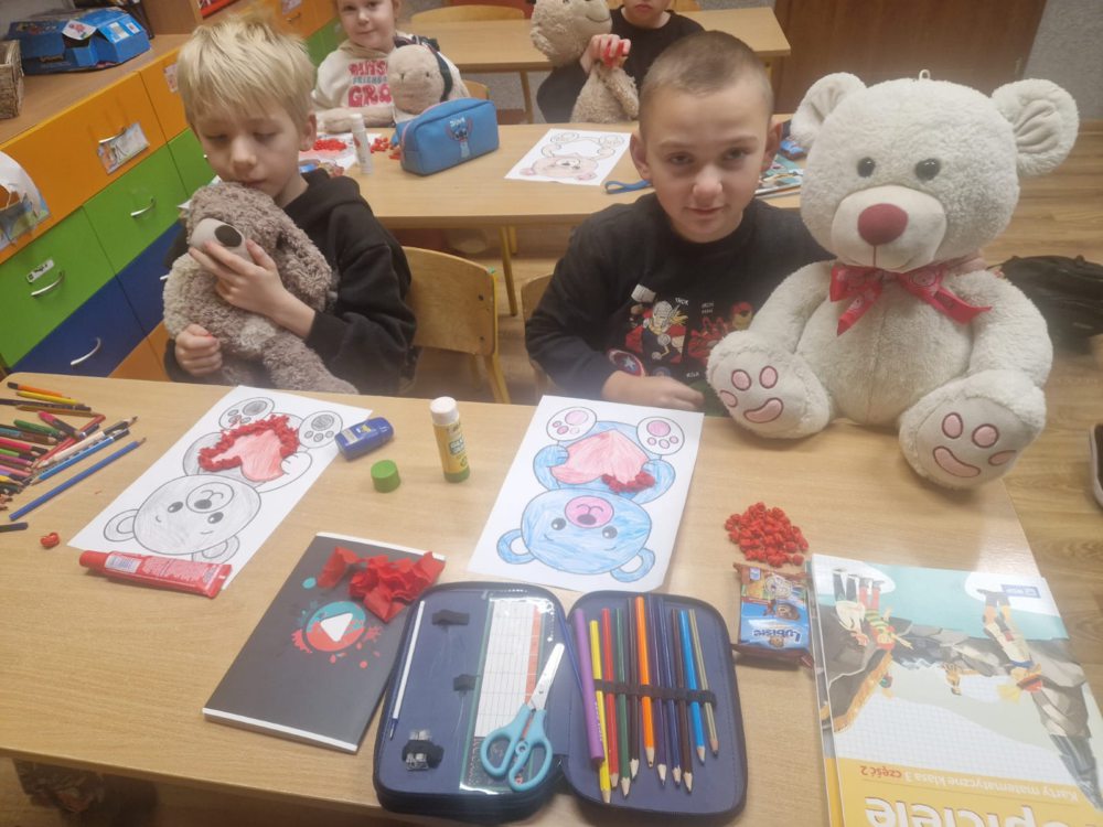 25 listopada w naszej szkole świętowaliśmy Dzień Pluszowego Misia. Dzieci przyniosły swoje ulubione pluszaki i z entuzjazmem opowiadały o swoich maskotkach i chętnie dzieliły się wspomnieniami związanymi z nimi. Aktywnie brały udział w misiowych zabawach oraz wykonały kolorowe prace plastyczne przedstawiające misie. Jednym z najprzyjemniejszych punktów dnia było wspólne pieczenie babeczek – dzieci pomagały w przygotowaniu ciasta, dekorowały wypieki i oczywiście z apetytem je zjadały.