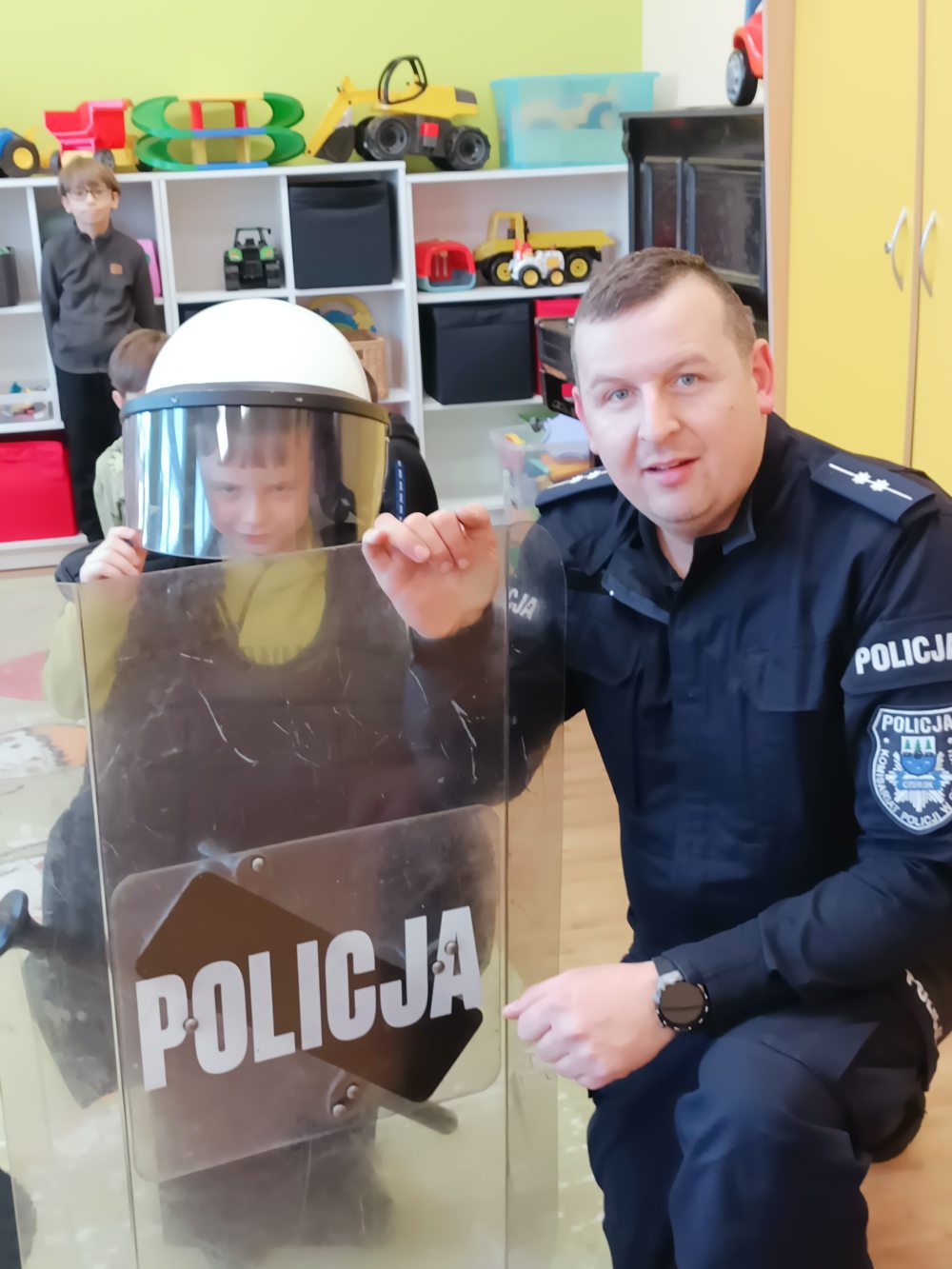 W czwartek naszą szkołę odwiedzili funkcjonariusze Marek Jasnoch i Tomasz Goncz z Komisariatu Policji w Czersku, którzy przeprowadzili zajęcia edukacyjne dla uczniów. Spotkanie miało na celu przybliżenie dzieciom zasad bezpieczeństwa oraz pokazanie, jak wygląda codzienna praca policjanta. Podczas zajęć dzieci poznały podstawowe zasady bezpiecznego poruszania się po drodze, dowiedziały się, jak reagować w sytuacjach zagrożenia oraz dlaczego warto dbać o własne bezpieczeństwo. Policjanci opowiadali także o swojej służbie, prezentując elementy umundurowania i wyposażenia. Największą atrakcją dla dzieci była możliwość przymierzenia części policyjnego sprzętu. Dzięki takiej wizycie dzieci nie tylko poszerzyły swoją wiedzę, ale także nabrały większej świadomości na temat bezpieczeństwa i roli policji w społeczeństwie.