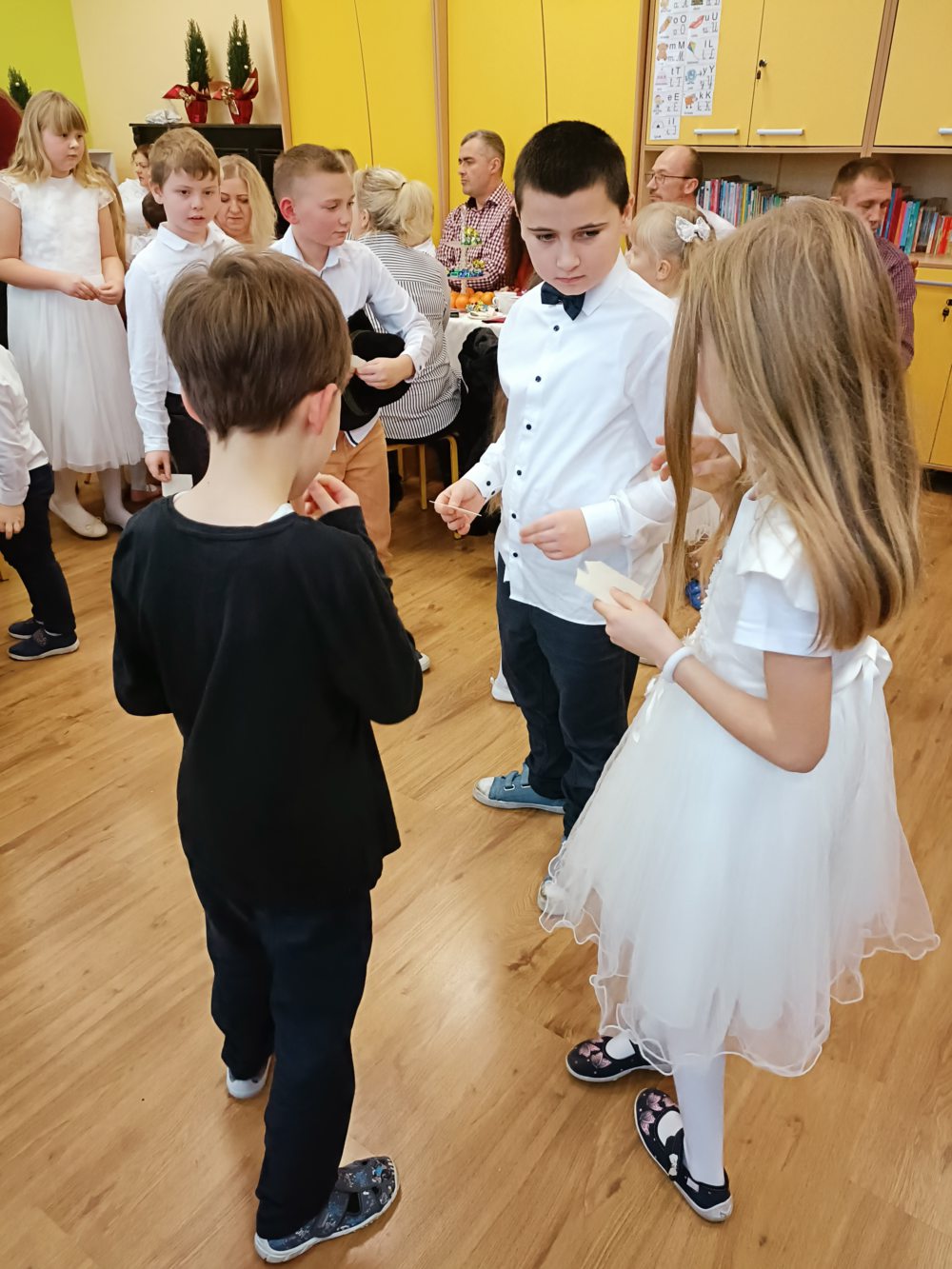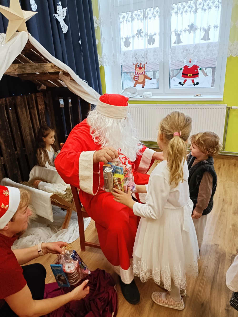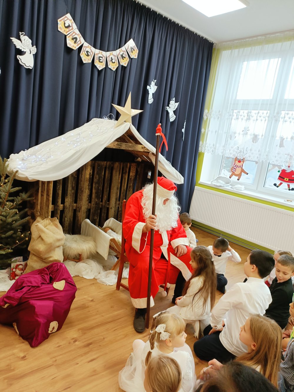 W naszej szkole odbyły się wyjątkowe jasełka, na które zostali zaproszeni rodzice oraz goście. Sala była pięknie udekorowana, a nad szopką świeciła jasna gwiazda betlejemska, wprowadzając wszystkich w świąteczny nastrój. Przedstawienie było bardzo piękne i wzruszające. Następnie na scenie pojawiły się anioły, które wykonały delikatny i pełen wdzięku taniec. Ich białe stroje oraz spokojna muzyka sprawiły, że publiczność z zapartym tchem oglądała występ. Rodzice z dumą i radością obserwowali swoje dzieci, nagradzając je gromkimi brawami. W dalszej części jasełek pojawił się Gwiazdor, który wniósł wiele radości i uśmiechu oraz przypomniał wszystkim o tym, co w świętach jest najważniejsze – miłości, dobroci i wspólnym byciu razem.