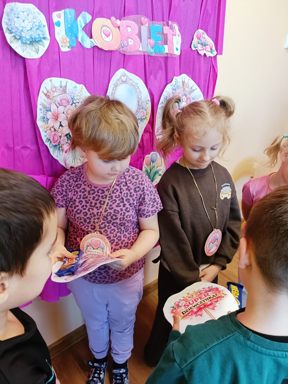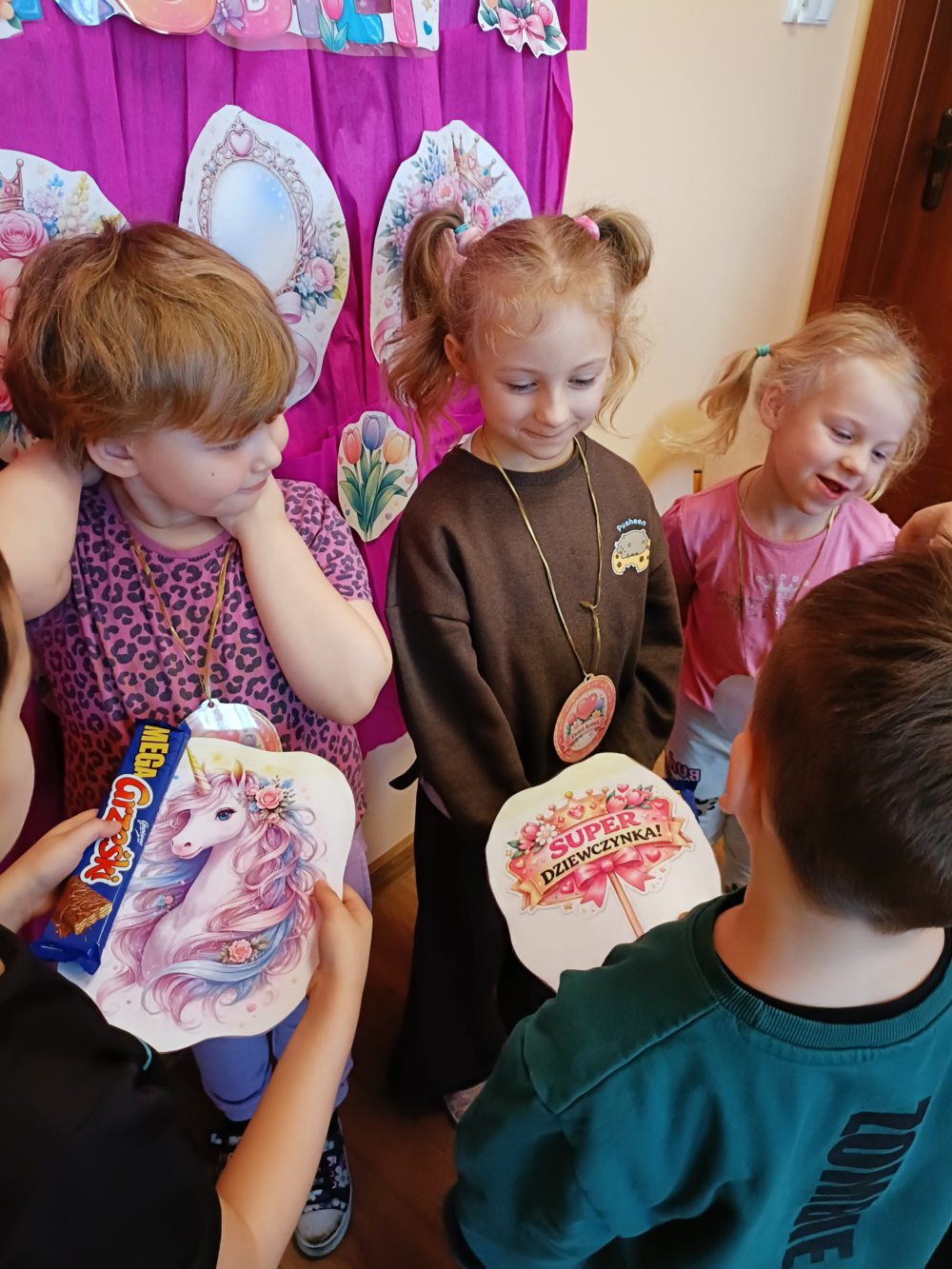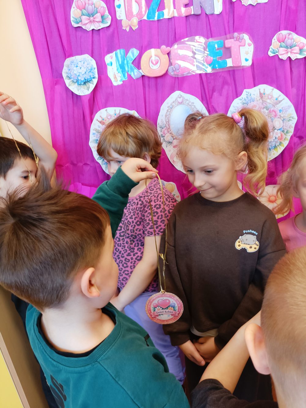 W wyjątkowo radosnej i twórczej atmosferze obchodziliśmy Dzień Kobiet. Tego dnia chłopcy zadbali o to, aby wszystkie dziewczynki poczuły się naprawdę wyjątkowo. Nie zabrakło miłych słów, drobnych upominków oraz wspólnej zabawy. Wielką atrakcją dnia były zajęcia plastyczne, podczas których dzieci z wielkim zaangażowaniem dekorowały rogaliki wykonane z masy plastycznej. Każdy rogalik był wyjątkowy i niepowtarzalny, a mali artyści mogli rozwijać swoją wyobraźnię i zdolności manualne. Dzieci przygotowywały również papierowe praliny, które układały na ozdobnych serduszkach. Podczas kolejnych zajęć dzieci układały bukiet. Mali artyści starannie dobierali kwiaty. Chłopcy wręczyli dziewczynkom symboliczne prezenty i pamiątkowe medale, składając im serdeczne życzenia. Uśmiechy na twarzach dziewczynek były najlepszym dowodem na to, że niespodzianki sprawiły im ogromną radość. Obchody Dnia Kobiet były wspaniałą okazją do okazywania życzliwości i szacunku. Ten dzień na długo pozostanie w pamięci jako pełen uśmiechu, wspólnej zabawy i miłych gestów.