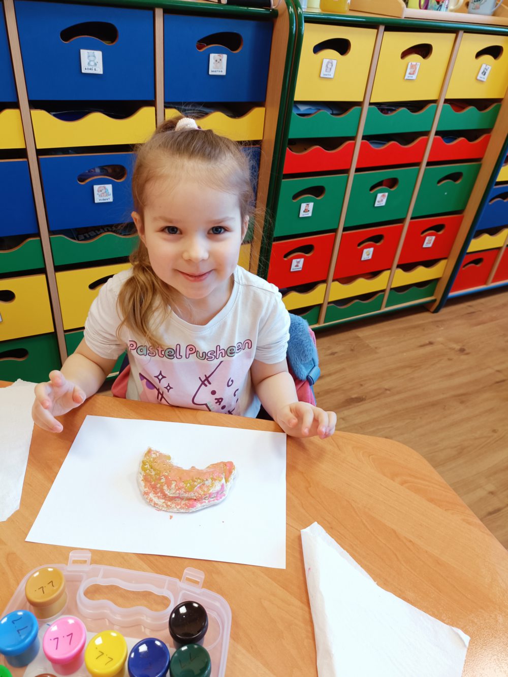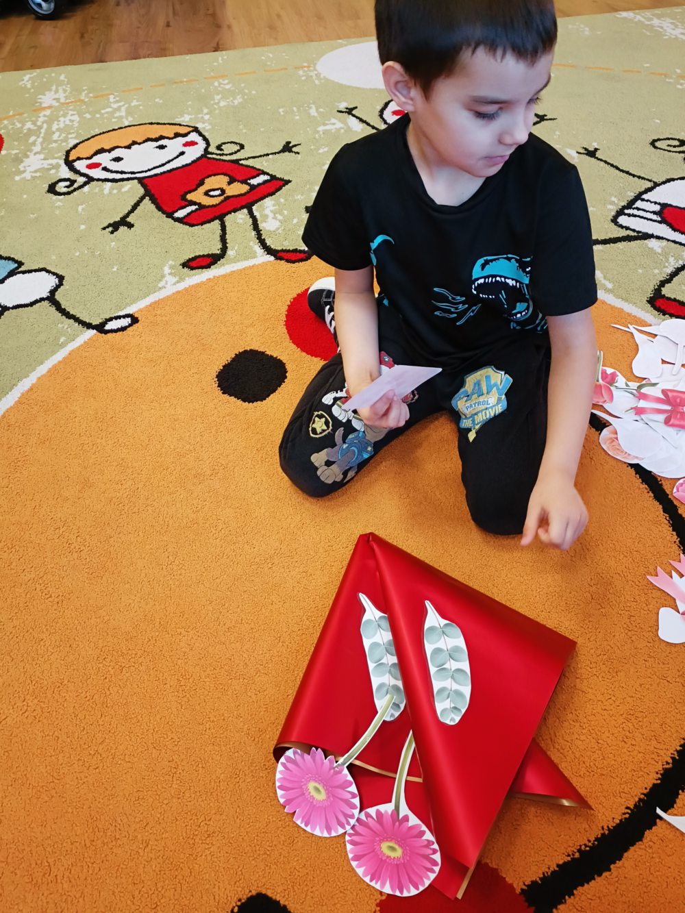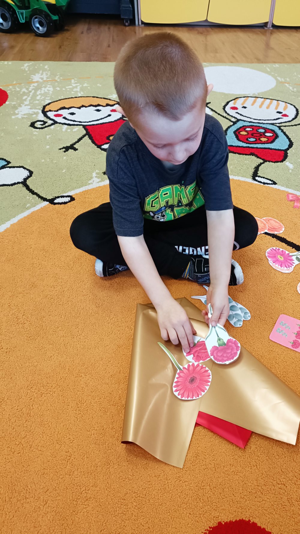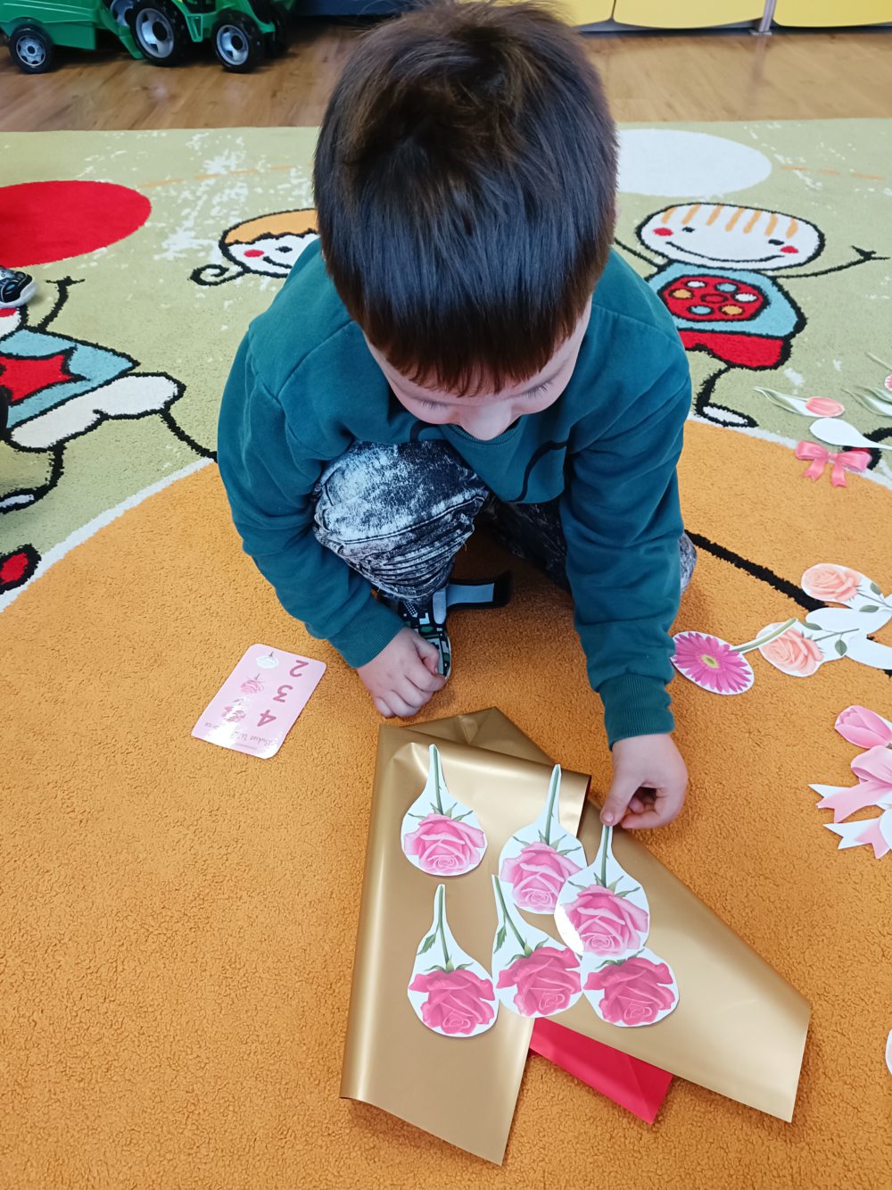 W wyjątkowo radosnej i twórczej atmosferze obchodziliśmy Dzień Kobiet. Tego dnia chłopcy zadbali o to, aby wszystkie dziewczynki poczuły się naprawdę wyjątkowo. Nie zabrakło miłych słów, drobnych upominków oraz wspólnej zabawy. Wielką atrakcją dnia były zajęcia plastyczne, podczas których dzieci z wielkim zaangażowaniem dekorowały rogaliki wykonane z masy plastycznej. Każdy rogalik był wyjątkowy i niepowtarzalny, a mali artyści mogli rozwijać swoją wyobraźnię i zdolności manualne. Dzieci przygotowywały również papierowe praliny, które układały na ozdobnych serduszkach. Podczas kolejnych zajęć dzieci układały bukiet. Mali artyści starannie dobierali kwiaty. Chłopcy wręczyli dziewczynkom symboliczne prezenty i pamiątkowe medale, składając im serdeczne życzenia. Uśmiechy na twarzach dziewczynek były najlepszym dowodem na to, że niespodzianki sprawiły im ogromną radość. Obchody Dnia Kobiet były wspaniałą okazją do okazywania życzliwości i szacunku. Ten dzień na długo pozostanie w pamięci jako pełen uśmiechu, wspólnej zabawy i miłych gestów.