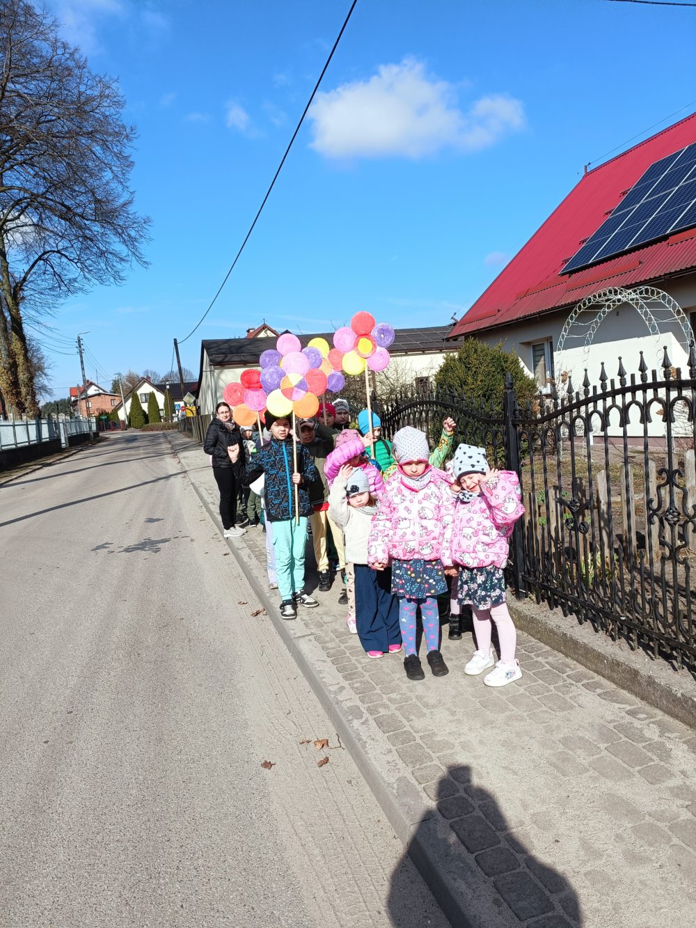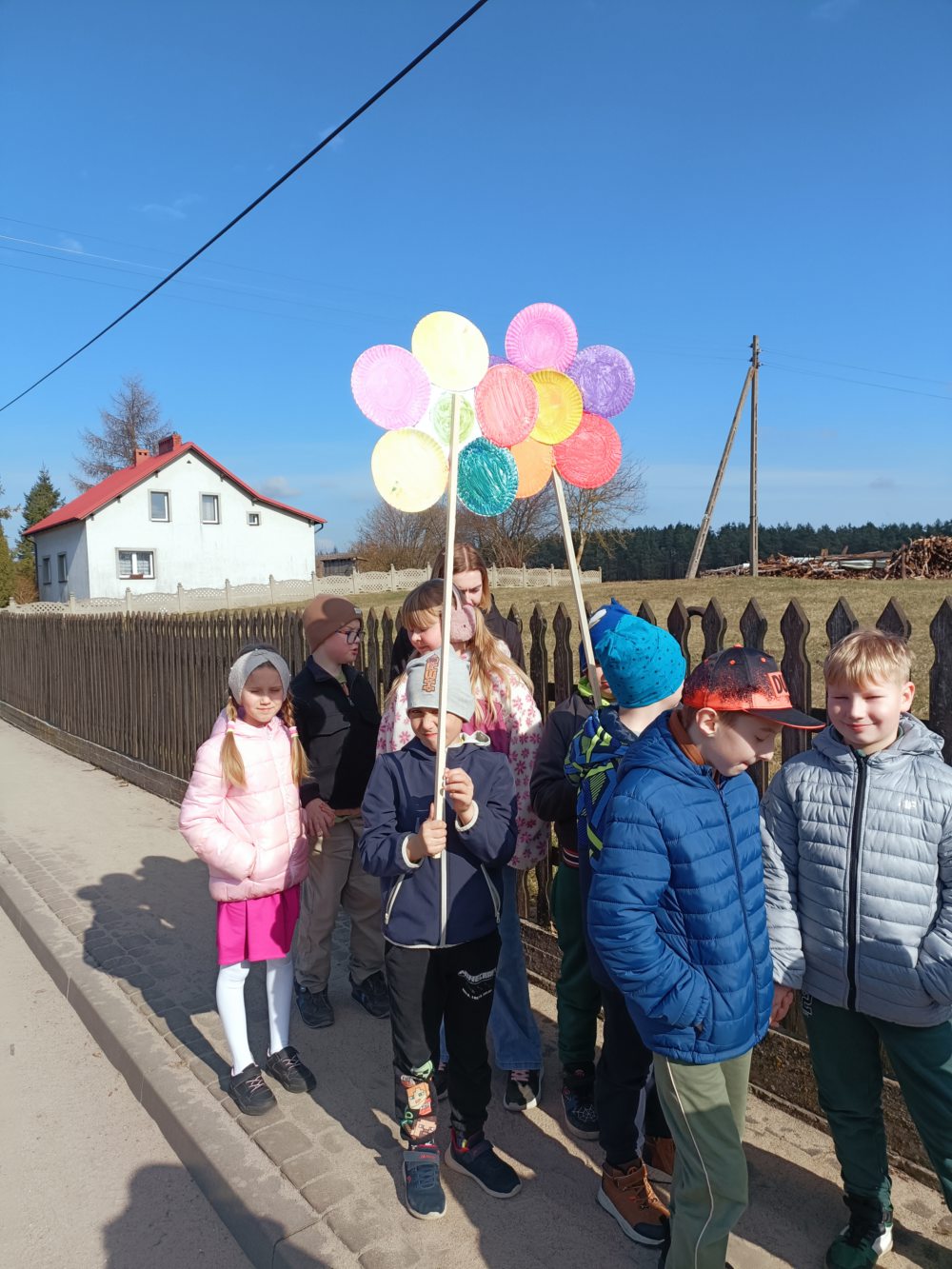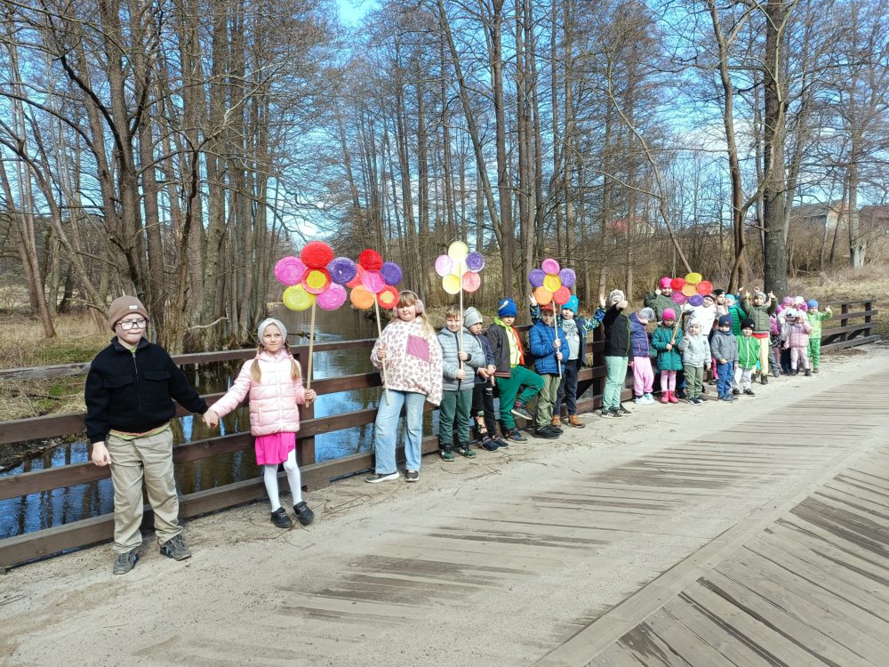 Z okazji pierwszego dnia wiosny dzieci z naszej szkoły z radością zaangażowały się w przygotowania do wspólnego świętowania. Najpierw wykonały kolorowe, kwiaty, które stały się symbolem nadchodzącej, długo wyczekiwanej wiosny. Następnie, ubrane w barwne stroje i pełne entuzjazmu, wyruszyły na spacer ulicami okolicy. Wiosenna wyprawa zaprowadziła je nad rzekę, gdzie w otoczeniu budzącej się do życia przyrody dzieci poszukiwały pierwszych oznak wiosny. Obserwowały przyrodę, nasłuchiwały śpiewu ptaków, zwracały uwagę na pierwsze pąki na drzewach oraz cieszyły się ciepłymi promieniami słońca. Spacer był nie tylko okazją do radosnej zabawy i integracji, ale również wartościową lekcją przyrody w terenie. Dzieci mogły bezpośrednio doświadczyć zmian zachodzących w przyrodzie oraz utrwalić swoją wiedzę w praktyce.