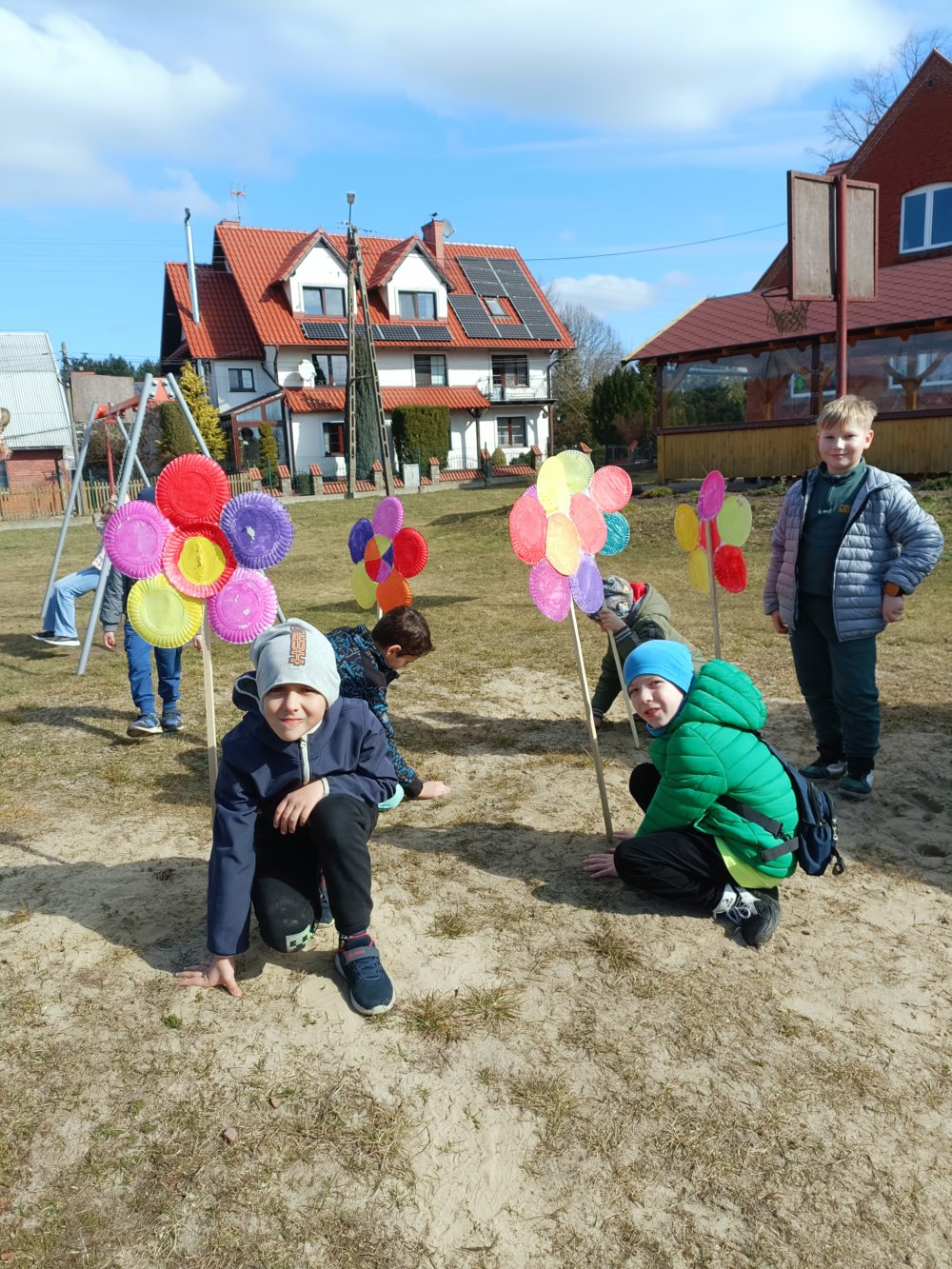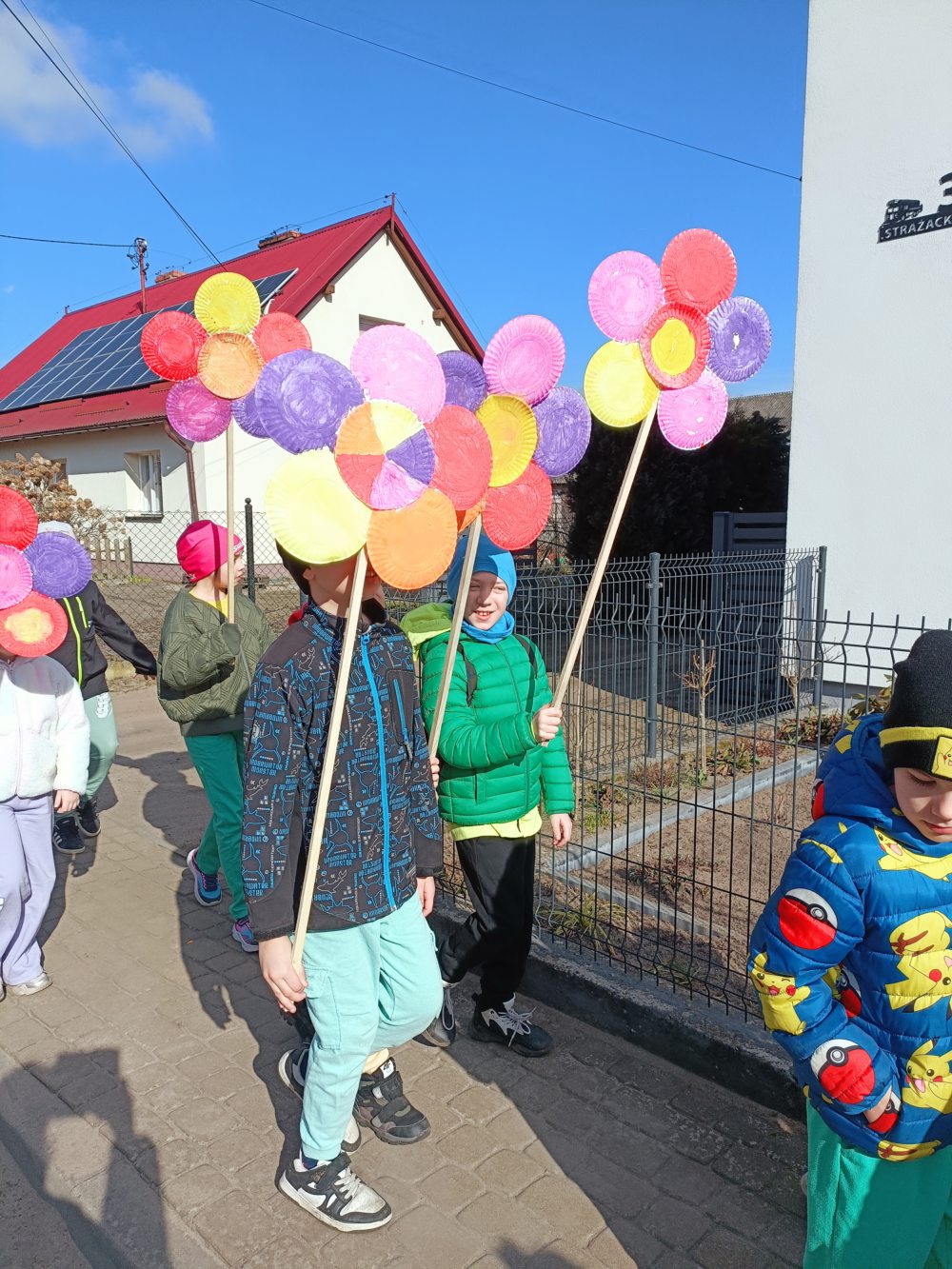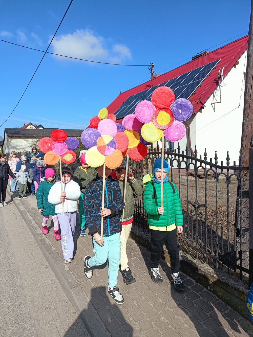 Z okazji pierwszego dnia wiosny dzieci z naszej szkoły z radością zaangażowały się w przygotowania do wspólnego świętowania. Najpierw wykonały kolorowe, kwiaty, które stały się symbolem nadchodzącej, długo wyczekiwanej wiosny. Następnie, ubrane w barwne stroje i pełne entuzjazmu, wyruszyły na spacer ulicami okolicy. Wiosenna wyprawa zaprowadziła je nad rzekę, gdzie w otoczeniu budzącej się do życia przyrody dzieci poszukiwały pierwszych oznak wiosny. Obserwowały przyrodę, nasłuchiwały śpiewu ptaków, zwracały uwagę na pierwsze pąki na drzewach oraz cieszyły się ciepłymi promieniami słońca. Spacer był nie tylko okazją do radosnej zabawy i integracji, ale również wartościową lekcją przyrody w terenie. Dzieci mogły bezpośrednio doświadczyć zmian zachodzących w przyrodzie oraz utrwalić swoją wiedzę w praktyce.