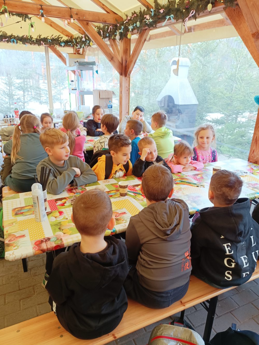 Dzieci z naszej szkoły wzięły udział w wyjątkowej wycieczce edukacyjnej do Costerina Park w Kościerzynie, gdzie uczestniczyły w warsztatach wielkanocnych. Podczas zajęć dzieci miały okazję poznać tradycje i zwyczaje związane ze Świętami Wielkanocnymi, a także rozwijać swoje zdolności manualne poprzez wykonywanie świątecznych ozdób. W programie znalazły się m.in. dekorowanie pisanek oraz  różnorodne aktywności integracyjne. Wyjazd był nie tylko cenną lekcją tradycji, ale również doskonałą okazją do wspólnego spędzenia czasu i integracji uczniów w przyjaznej, wiosennej atmosferze.