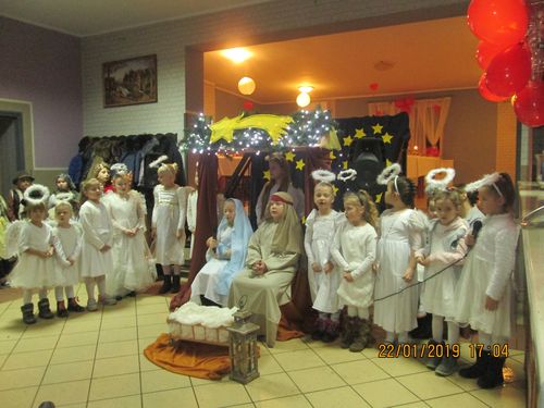 We wtorek 22 stycznia, dzieci z naszej szkoły zaprosiły swoje babcie i dziadków na spotkanie z okazji Dnia Babci i Dnia Dziadka do sali remizy OSP w Odrach. Babcie i dziadkowie obejrzeli w wykonaniu swoich wnuków jasełka, wysłuchali kolęd śpiewanych po polsku i po angielsku. Po jasełkach dzieci składały życzenia swoim dziadkom po polsku i po kaszubsku oraz śpiewały dla nich piosenki. Po części oficjalnej dzieci wręczyły laurki i piękne własnoręcznie wykonane kwiatki. Buziakom i uściskom nie było końca. Następnie dzieci zaprosiły swoje babcie i dziadków na kawę, ciasto i torty, które upiekły i podawały mamusie przy pomocy wnuków. Muzyczną oprawę zapewnił pan Marek Łangowski. Dzieci wraz ze swoimi babciami i dziadkami tańczyli przy znanych utworach muzycznych. Między piosenkami były konkursy: obieranie jabłka, karmienie wnuka murzynkiem, rozpoznawanie smakołyków po smaku, taniec na gazecie. Każdy uczestnik konkursu otrzymał nagrodę. Wszyscy uczestnicy uroczystości bawili się wspaniale!