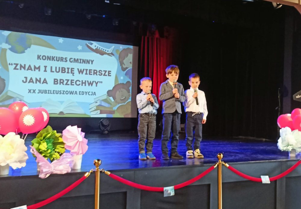 4 czerwca w GCK w Czersku odbył się XX Gminny Konkurs „Znam i lubię wiersze Jana Brzechwy”. Nasze przedszkole reprezentowali: Kordian, Antek i Adaś. W radosnej atmosferze dzieci rywalizowały w zabawach opartych na twórczości Brzechwy – rozwiązywały zadania, recytowały wiersze, kolorowały, układały puzzle i szukały postaci z wierszy. Nie zabrakło wspólnej zabawy, muzyki i słodkiego poczęstunku. Wszyscy uczestnicy zdobyli pierwsze miejsce. Każde dziecko otrzymało nagrodę i dyplom.