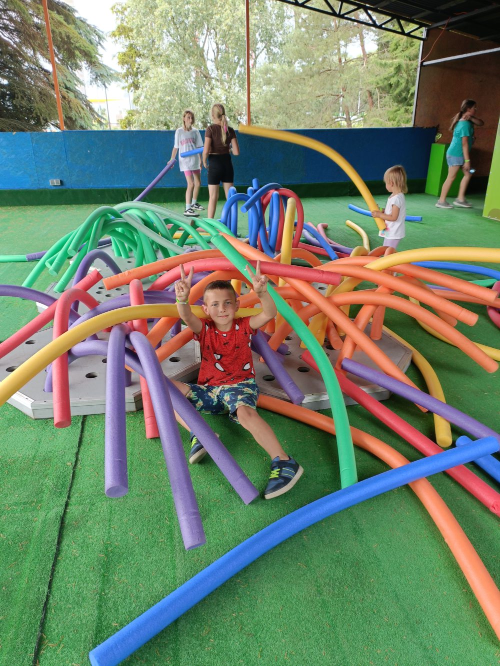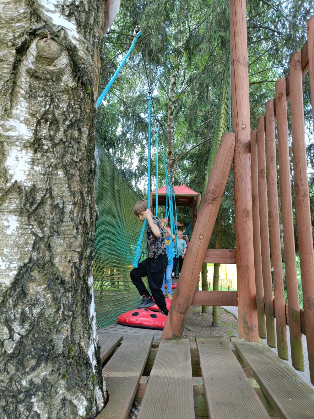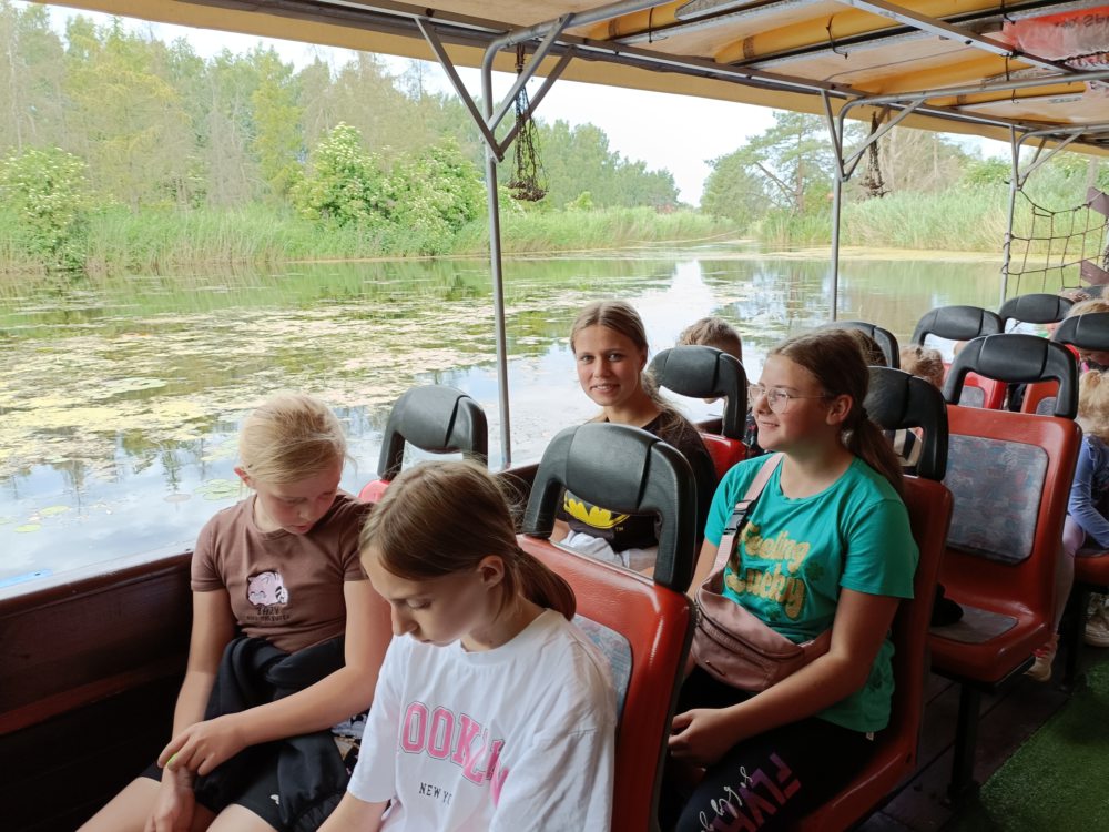23 czerwca dzieci wybrały się na szkolną wycieczkę do Rodzinnego Parku Rozrywki Nowa Holandia w Elblągu. Był to dzień pełen przygód, dobrej zabawy i aktywności na świeżym powietrzu. Podczas wizyty dzieci miały okazję zwiedzić ścieżkę edukacyjną z ciekawostkami przyrodniczymi. Zwiedziły repliki historycznych miejsc — Stonehenge, Wyspę Moai i osadę wikingów. Ogromną atrakcją był rejs tramwajem wodnym i podziwianie malowniczych kanałów parku. Mnóstwo śmiechu i radości było podczas zabawy na zjeżdżalniach, ściankach wspinaczkowych oraz dmuchanym placu zabaw. Dzieci również sprawdziły swoje siły w parku linowym. Chętnie korzystały z takich atrakcji, jak gabinet śmiechu z lustrami, obłędny tunel, krzywy domek, magiczny kran i zaczarowany stolik.