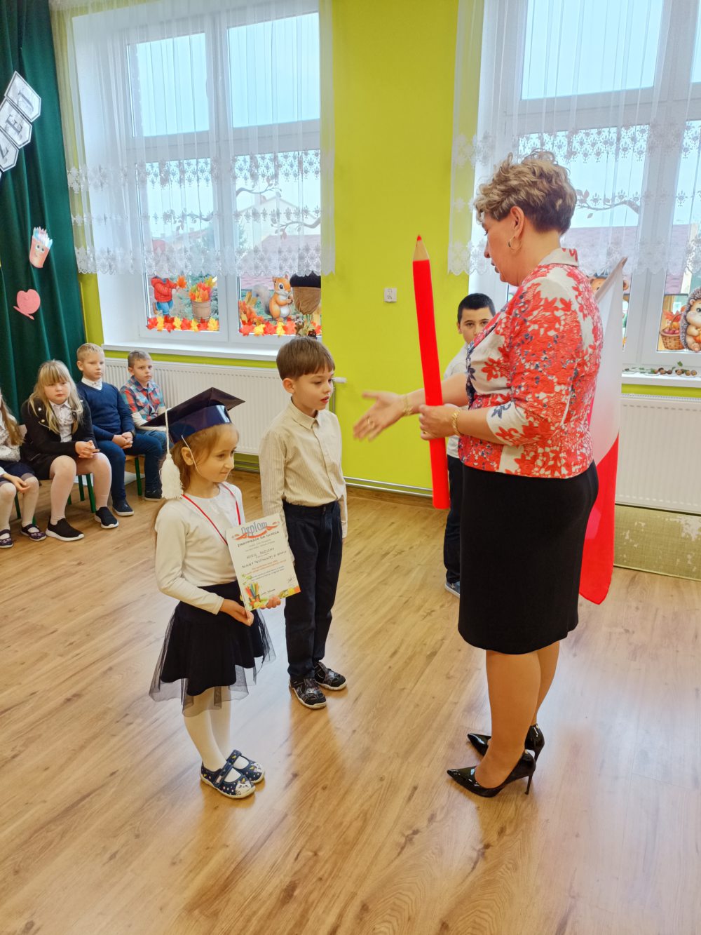 Uroczyste Pasowanie na Ucznia to jeden z najważniejszych i najbardziej wzruszających momentów w życiu każdego pierwszoklasisty. Uroczystość, która tradycyjnie odbywa się w naszej szkole w październiku, oficjalnie włącza najmłodszych uczniów do społeczności szkolnej. W tym szczególnym dniu uczniowie klas pierwszych, ubrani w galowe stroje, przeżywali chwile pełne emocji, które na długo pozostaną w ich sercach. Uroczystość rozpoczęła się powitaniem zaproszonych gości, rodziców, nauczycieli oraz oczywiście głównych bohaterów – pierwszoklasistów. Następnie dzieci zaprezentowały swoje talenty. Poprzez piękny śpiew i wzruszające recytacje wierszy, udowodniły, że są gotowe do podjęcia wyzwań związanych z nauką i zasłużyły na miano pełnoprawnego ucznia. Kluczowym momentem było złożenie uroczystego ślubowania. Z powagą i przekonaniem, w obecności Dyrekcji oraz Rodziców, uczniowie przyrzekli być dobrymi i pilnymi uczniami, dbać o honor szkoły i sumiennie wypełniać swoje obowiązki. Po złożeniu przysięgi nastąpił najważniejszy moment – akt pasowania. Pani Dyrektor, używając wielkiego, symbolicznego ołówka, dokonała pasowania, dotykając nim ramienia każdego dziecka. Ten gest oznaczał symboliczne przyjęcie ich do grona uczniów Szkoły Podstawowej w Odrach. Na pamiątkę tego wyjątkowego dnia, nowo pasowani uczniowie otrzymali pamiątkowe dyplomy. Nie zabrakło również ciepłych słów, życzeń sukcesów na nowej drodze edukacyjnej oraz słodkich upominków. Uroczystość pasowania to nie tylko szkolna tradycja, ale przede wszystkim symboliczne przekroczenie progu dorosłości szkolnej.