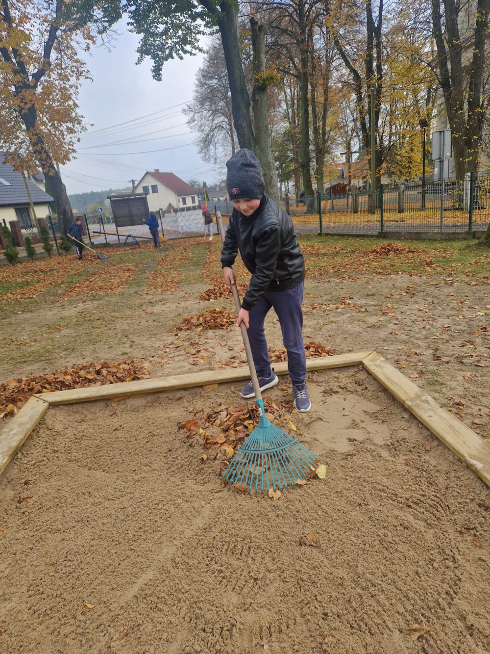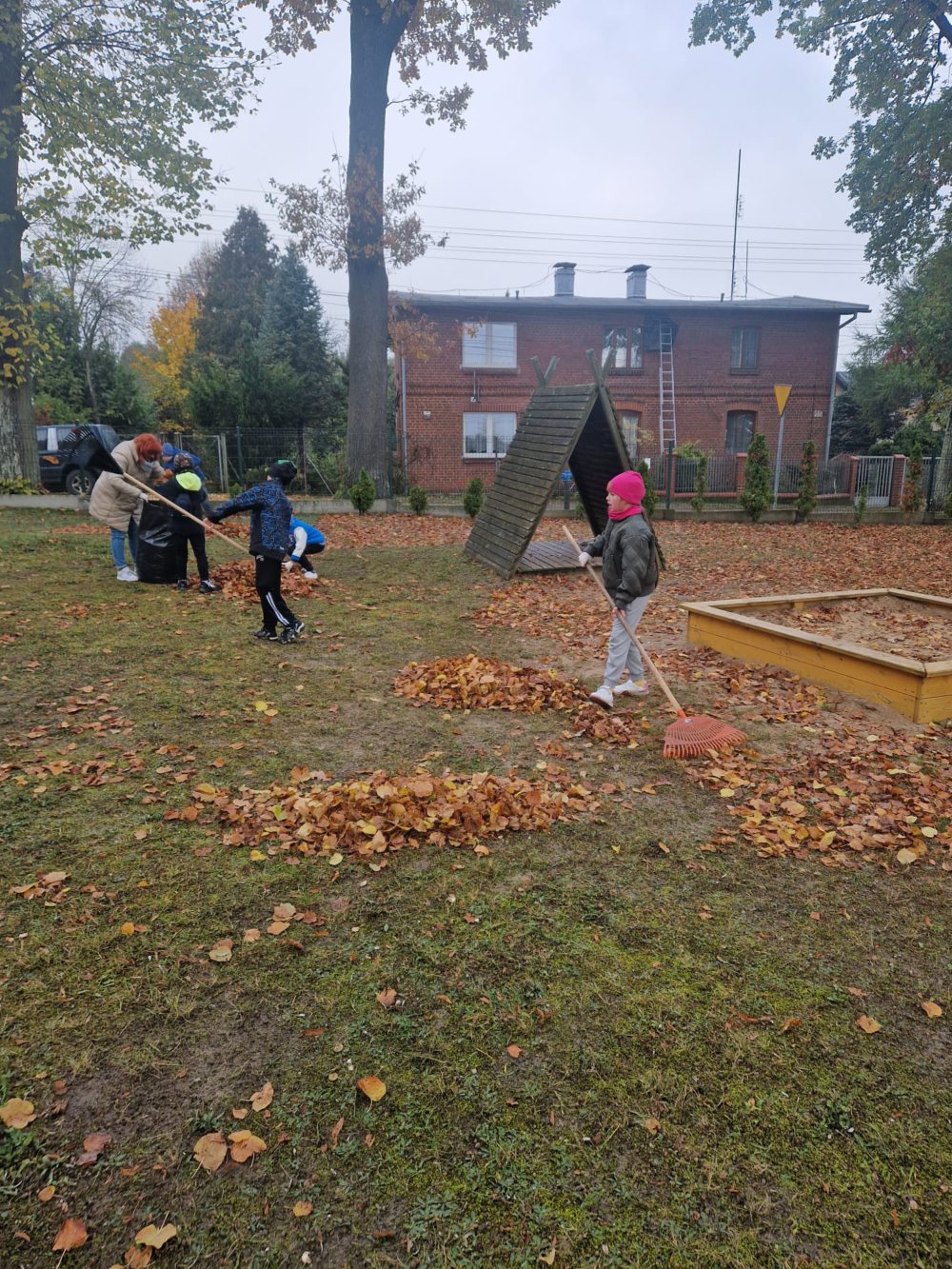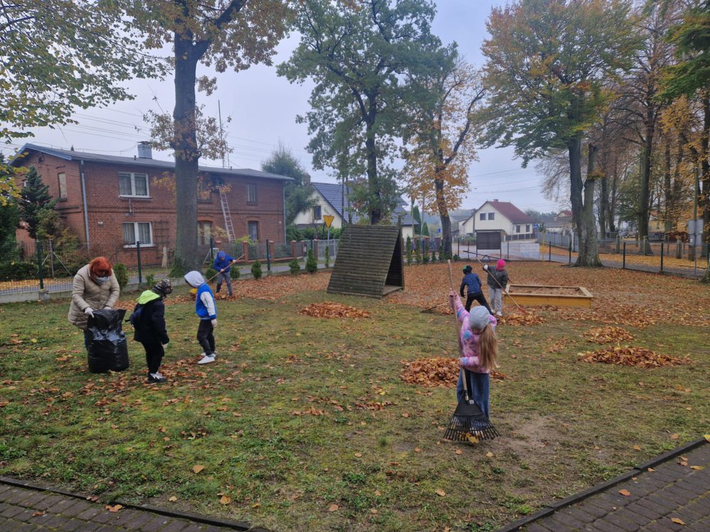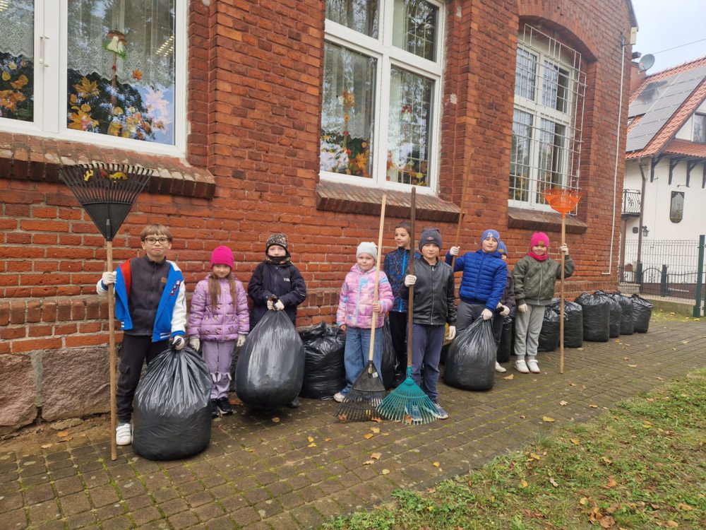 Z wielką radością informujemy o udziale naszych uczniów w tegorocznej akcji jesiennego sprzątania terenu szkoły! Mimo chłodu, z uśmiechem i wielkim zaangażowaniem, nasi mali pomocnicy chwycili za grabie i ruszyli do pracy, aby pozbyć się opadłych liści. Wspólna praca to doskonała okazja do nauki odpowiedzialności, pracy zespołowej oraz dbałości o środowisko naturalne. Jak widać na zdjęciach, wszyscy uczniowie podeszli do zadania z wielkim entuzjazmem. Efektem ich starań jest kilkanaście czarnych worków wypełnionych liśćmi oraz czysty i schludny teren wokół szkoły.