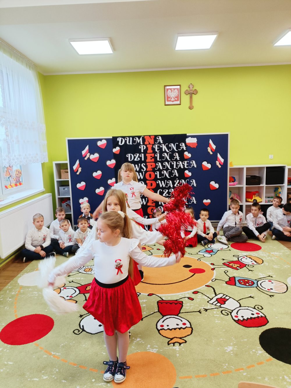 W piątek, 7 listopada, w naszej szkole odbył się uroczysty apel z okazji Narodowego Święta Niepodległości. Uczniowie zaprezentowali piękny program artystyczny, upamiętniający 11 listopada, dzień, w którym Polska po 123 latach niewoli odzyskała wolność. Podczas występu dzieci przedstawiły wiersze i piosenki o tematyce patriotycznej, a całość dopełniły biało-czerwone stroje oraz dekoracje w barwach narodowych. Na tle przygotowanej scenografii pojawiły się hasła przypominające o najważniejszych wartościach, takich jak duma, wolność, odwaga i miłość do ojczyzny.