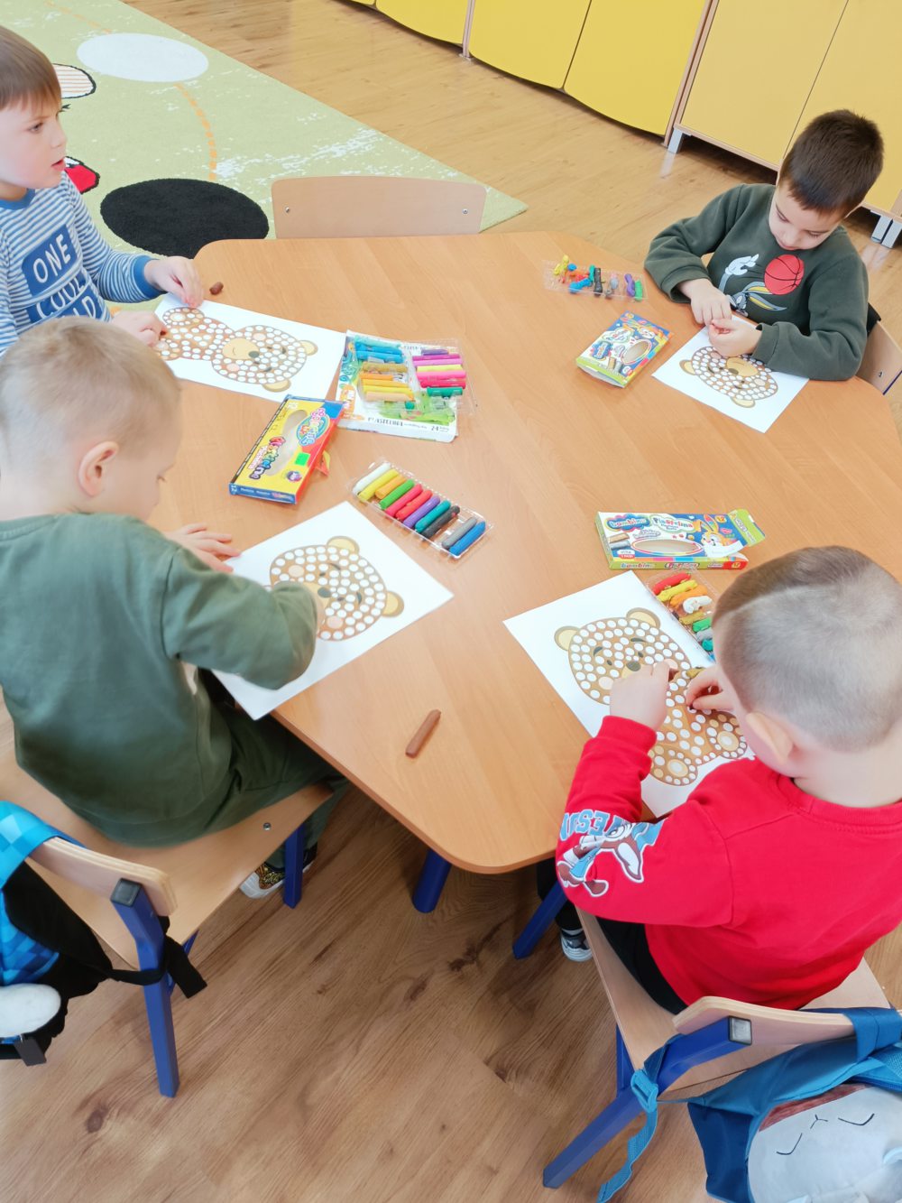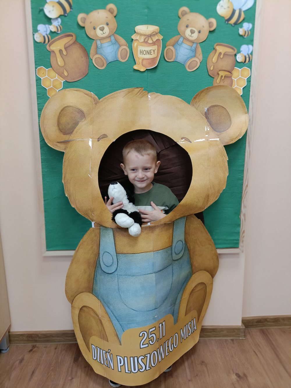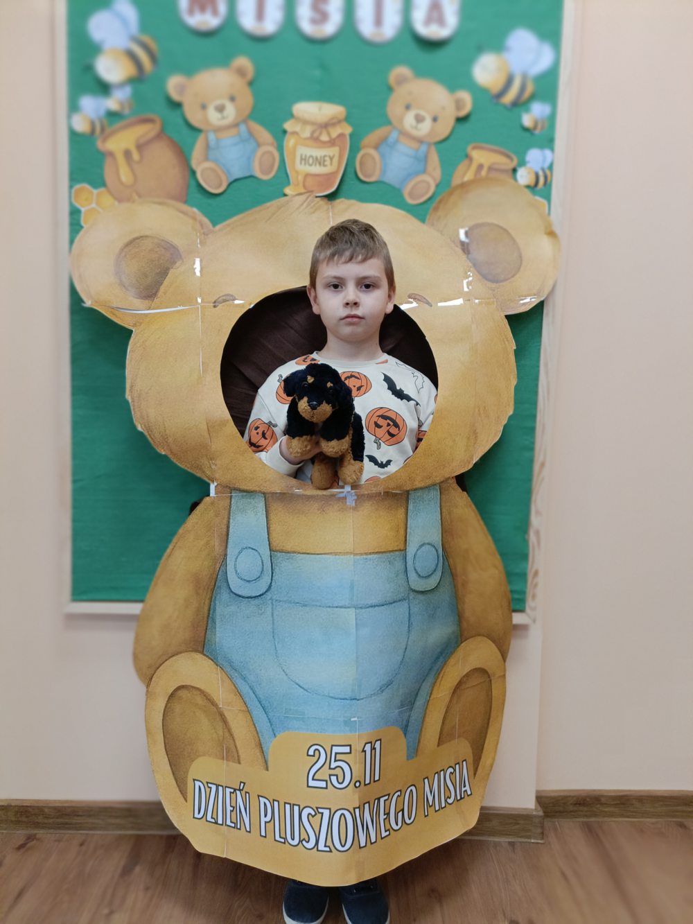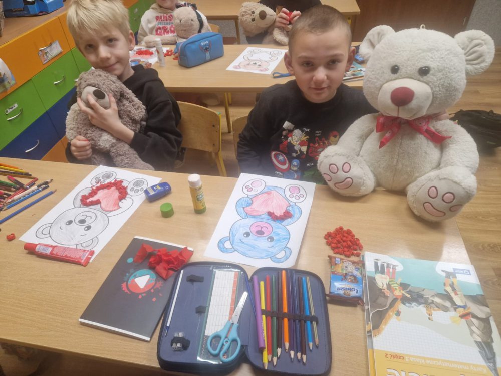 25 listopada w naszej szkole świętowaliśmy Dzień Pluszowego Misia. Dzieci przyniosły swoje ulubione pluszaki i z entuzjazmem opowiadały o swoich maskotkach i chętnie dzieliły się wspomnieniami związanymi z nimi. Aktywnie brały udział w misiowych zabawach oraz wykonały kolorowe prace plastyczne przedstawiające misie. Jednym z najprzyjemniejszych punktów dnia było wspólne pieczenie babeczek – dzieci pomagały w przygotowaniu ciasta, dekorowały wypieki i oczywiście z apetytem je zjadały.