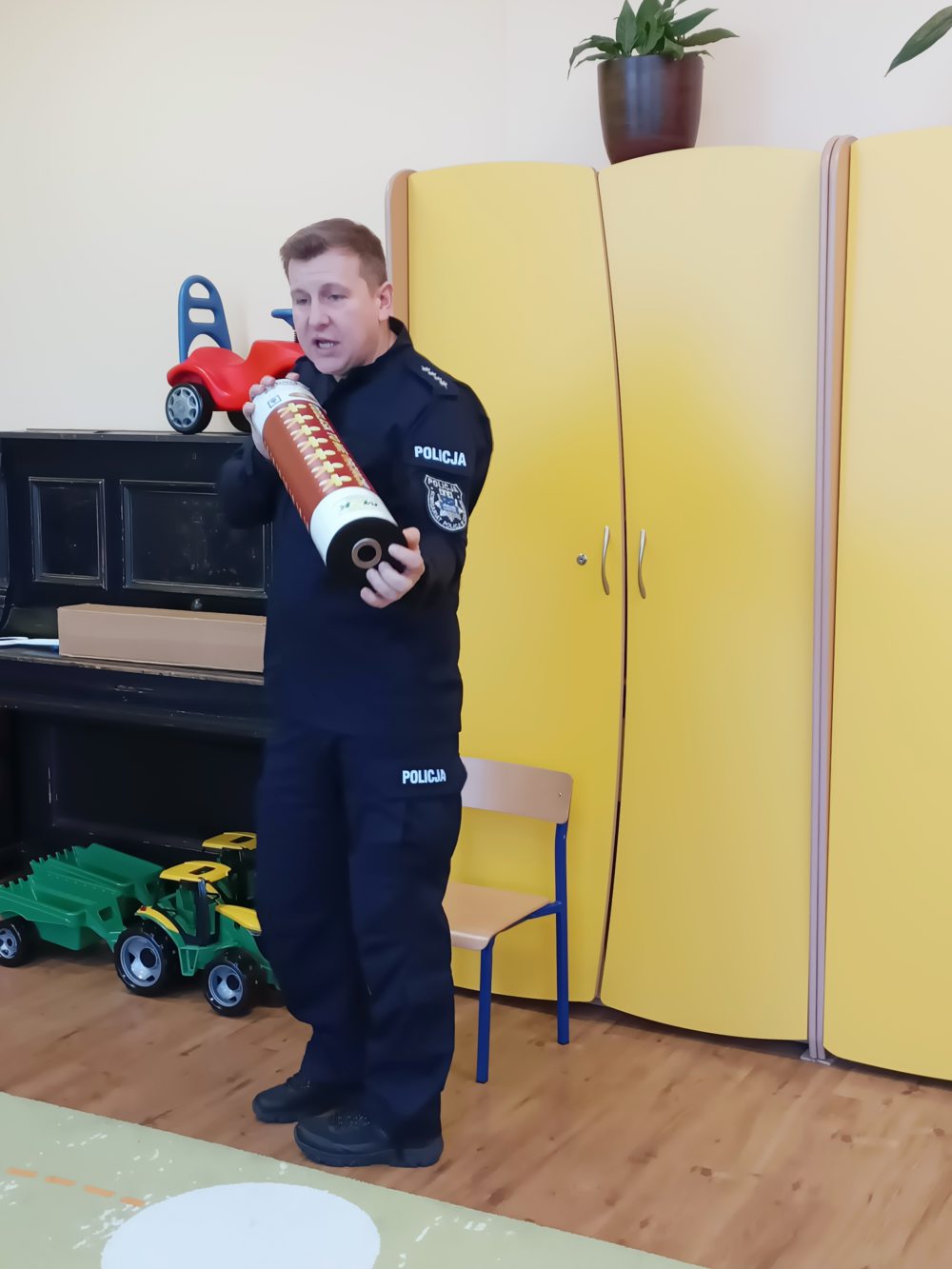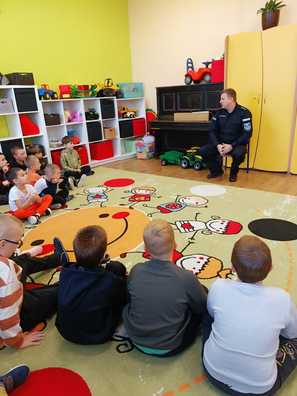 W czwartek naszą szkołę odwiedzili funkcjonariusze Marek Jasnoch i Tomasz Goncz z Komisariatu Policji w Czersku, którzy przeprowadzili zajęcia edukacyjne dla uczniów. Spotkanie miało na celu przybliżenie dzieciom zasad bezpieczeństwa oraz pokazanie, jak wygląda codzienna praca policjanta. Podczas zajęć dzieci poznały podstawowe zasady bezpiecznego poruszania się po drodze, dowiedziały się, jak reagować w sytuacjach zagrożenia oraz dlaczego warto dbać o własne bezpieczeństwo. Policjanci opowiadali także o swojej służbie, prezentując elementy umundurowania i wyposażenia. Największą atrakcją dla dzieci była możliwość przymierzenia części policyjnego sprzętu. Dzięki takiej wizycie dzieci nie tylko poszerzyły swoją wiedzę, ale także nabrały większej świadomości na temat bezpieczeństwa i roli policji w społeczeństwie.