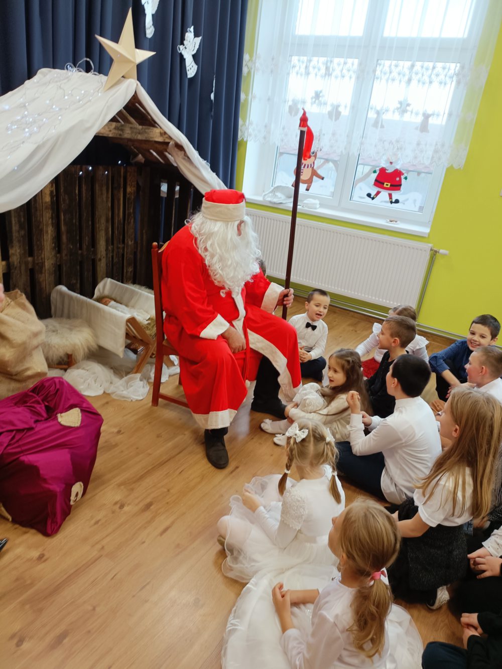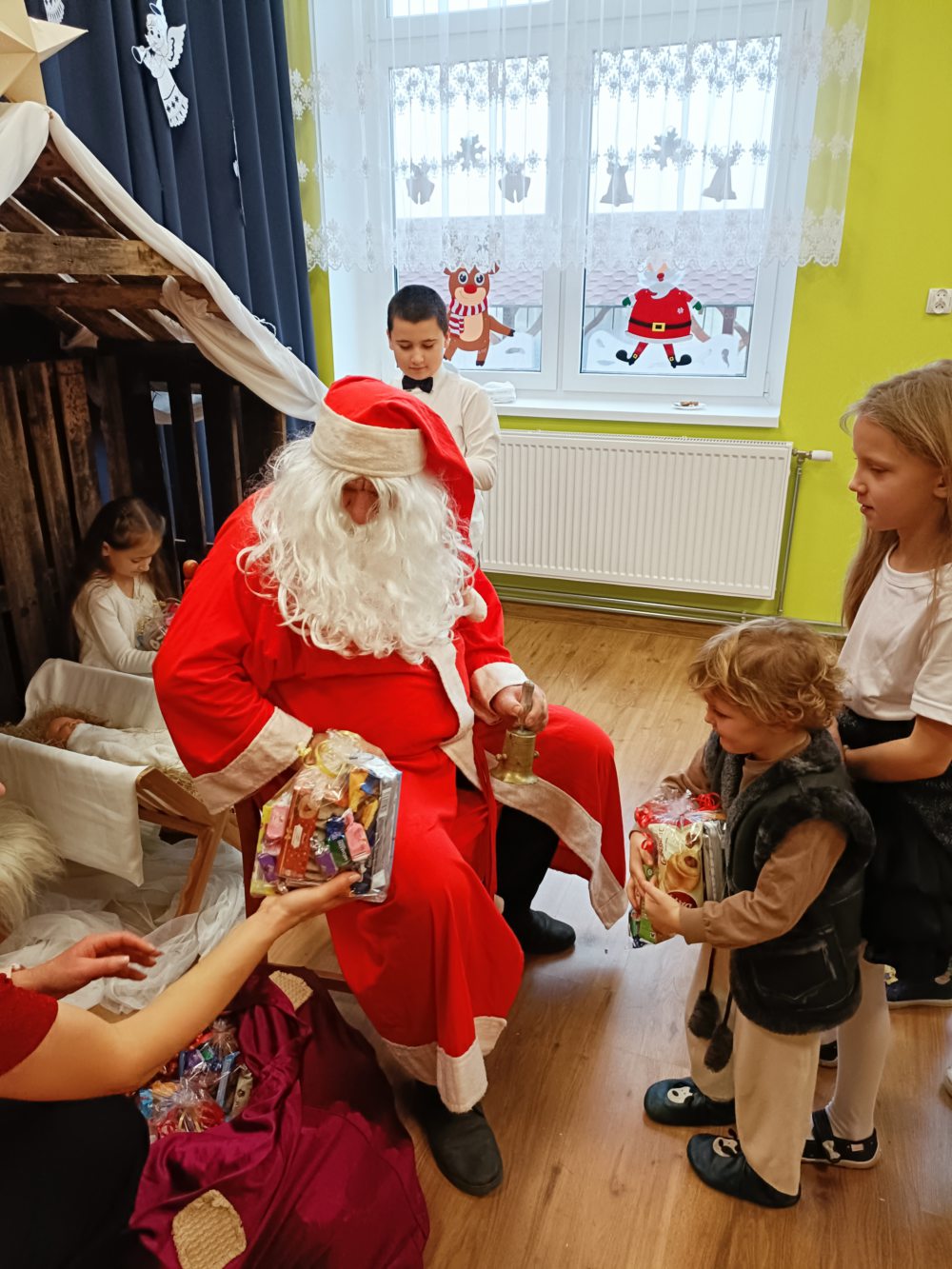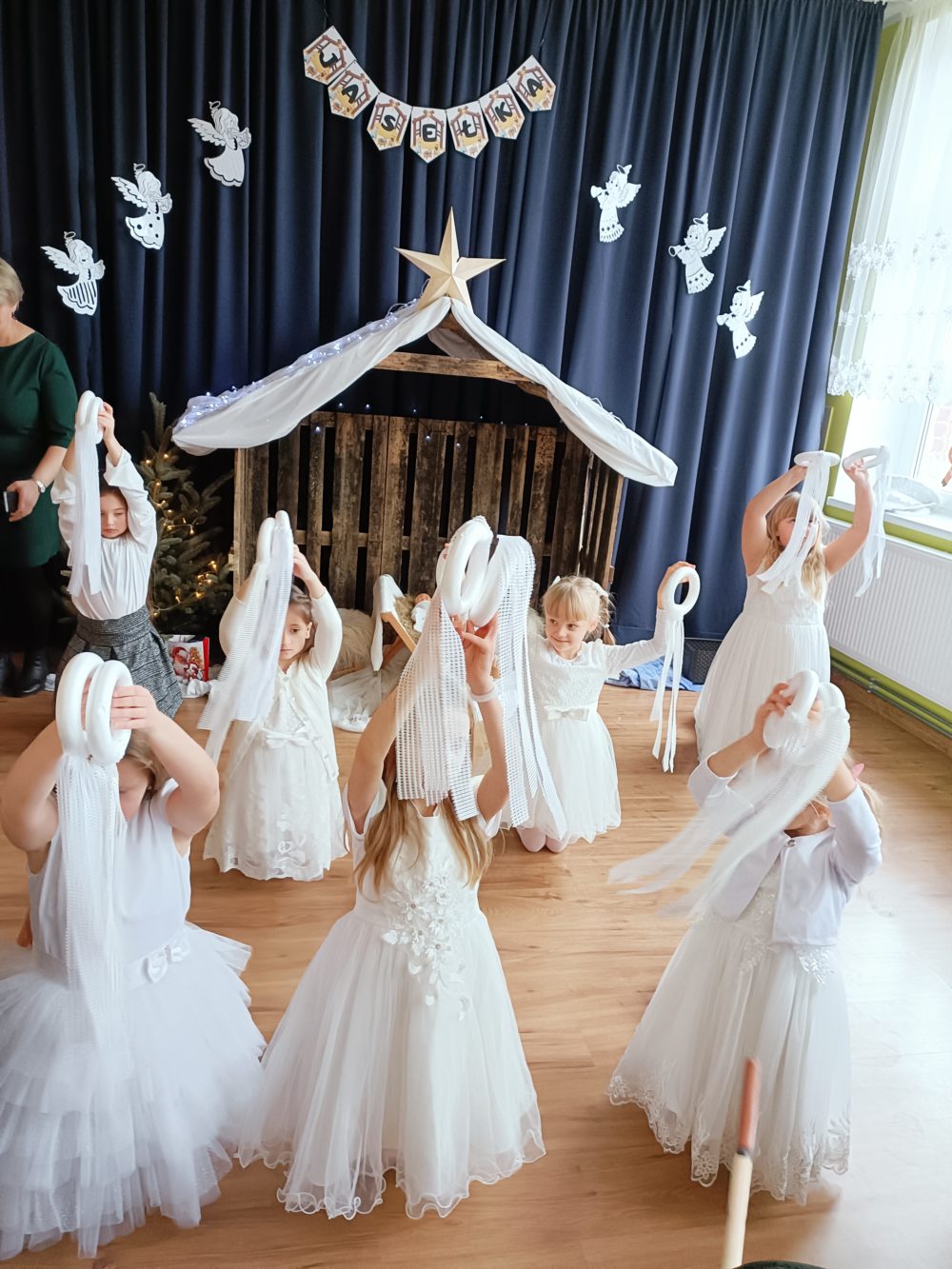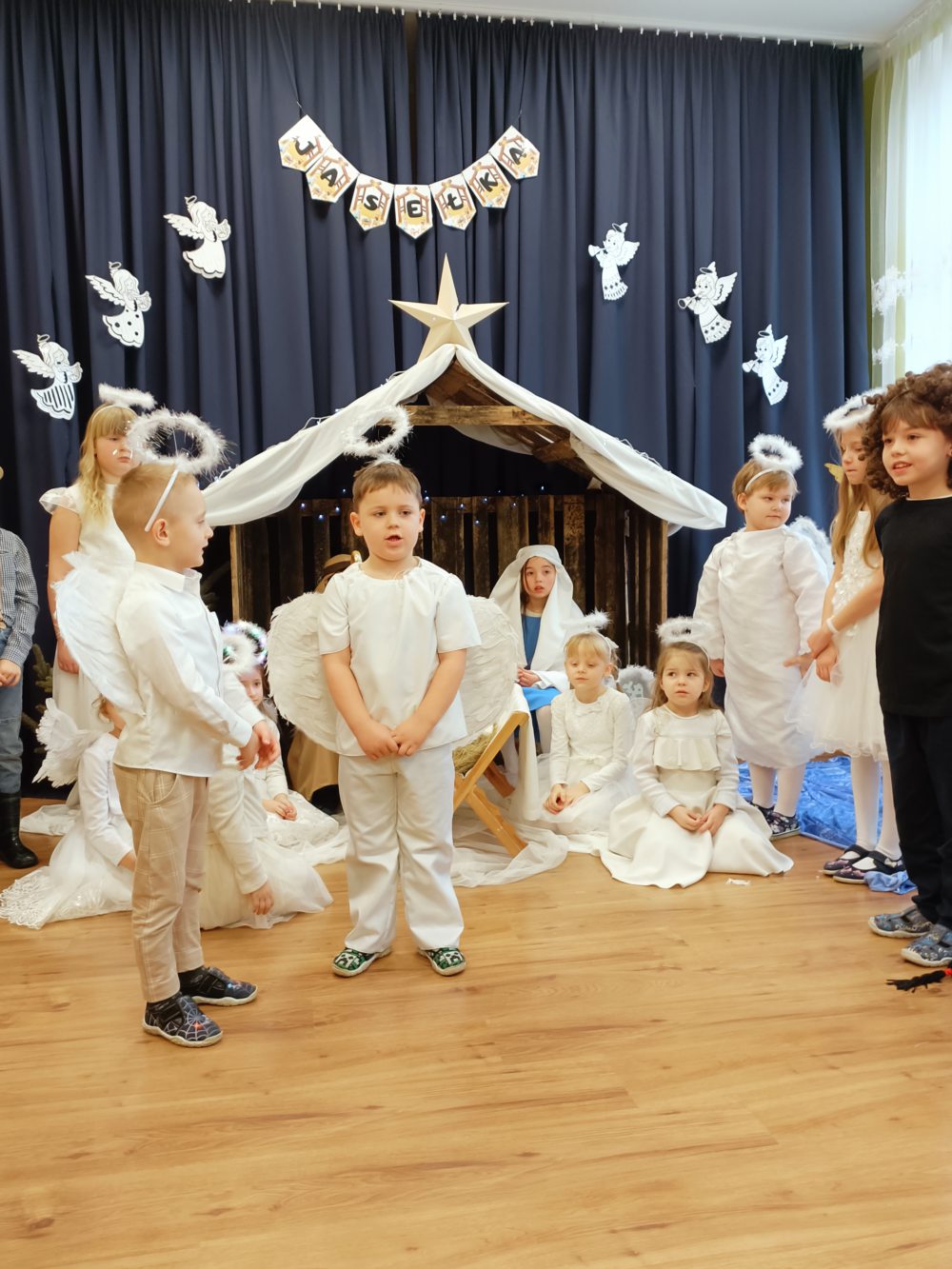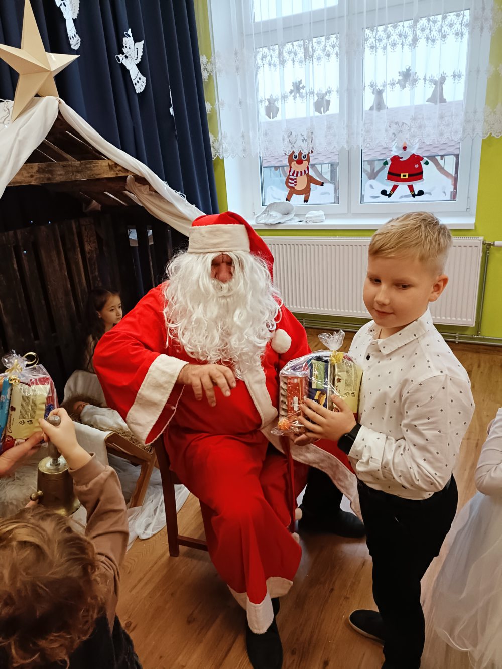 W naszej szkole odbyły się wyjątkowe jasełka, na które zostali zaproszeni rodzice oraz goście. Sala była pięknie udekorowana, a nad szopką świeciła jasna gwiazda betlejemska, wprowadzając wszystkich w świąteczny nastrój. Przedstawienie było bardzo piękne i wzruszające. Następnie na scenie pojawiły się anioły, które wykonały delikatny i pełen wdzięku taniec. Ich białe stroje oraz spokojna muzyka sprawiły, że publiczność z zapartym tchem oglądała występ. Rodzice z dumą i radością obserwowali swoje dzieci, nagradzając je gromkimi brawami. W dalszej części jasełek pojawił się Gwiazdor, który wniósł wiele radości i uśmiechu oraz przypomniał wszystkim o tym, co w świętach jest najważniejsze – miłości, dobroci i wspólnym byciu razem.