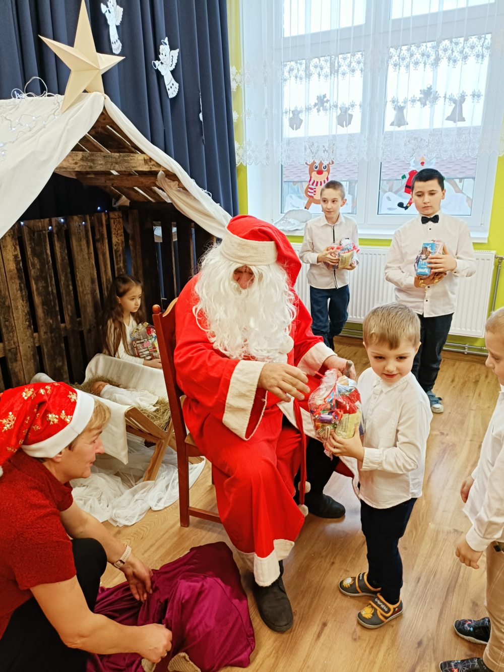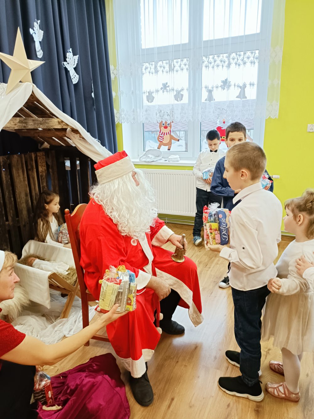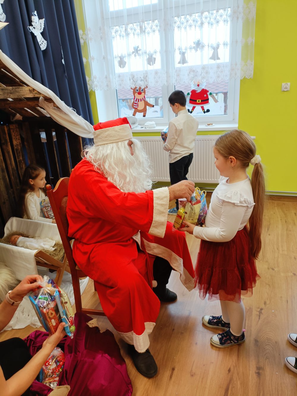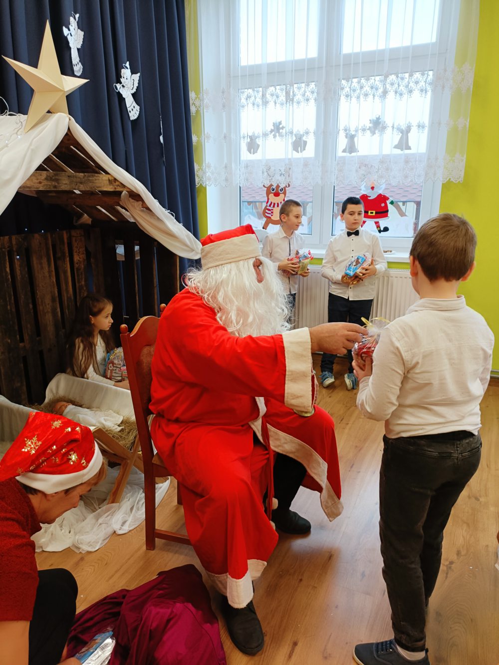 W naszej szkole odbyły się wyjątkowe jasełka, na które zostali zaproszeni rodzice oraz goście. Sala była pięknie udekorowana, a nad szopką świeciła jasna gwiazda betlejemska, wprowadzając wszystkich w świąteczny nastrój. Przedstawienie było bardzo piękne i wzruszające. Następnie na scenie pojawiły się anioły, które wykonały delikatny i pełen wdzięku taniec. Ich białe stroje oraz spokojna muzyka sprawiły, że publiczność z zapartym tchem oglądała występ. Rodzice z dumą i radością obserwowali swoje dzieci, nagradzając je gromkimi brawami. W dalszej części jasełek pojawił się Gwiazdor, który wniósł wiele radości i uśmiechu oraz przypomniał wszystkim o tym, co w świętach jest najważniejsze – miłości, dobroci i wspólnym byciu razem.