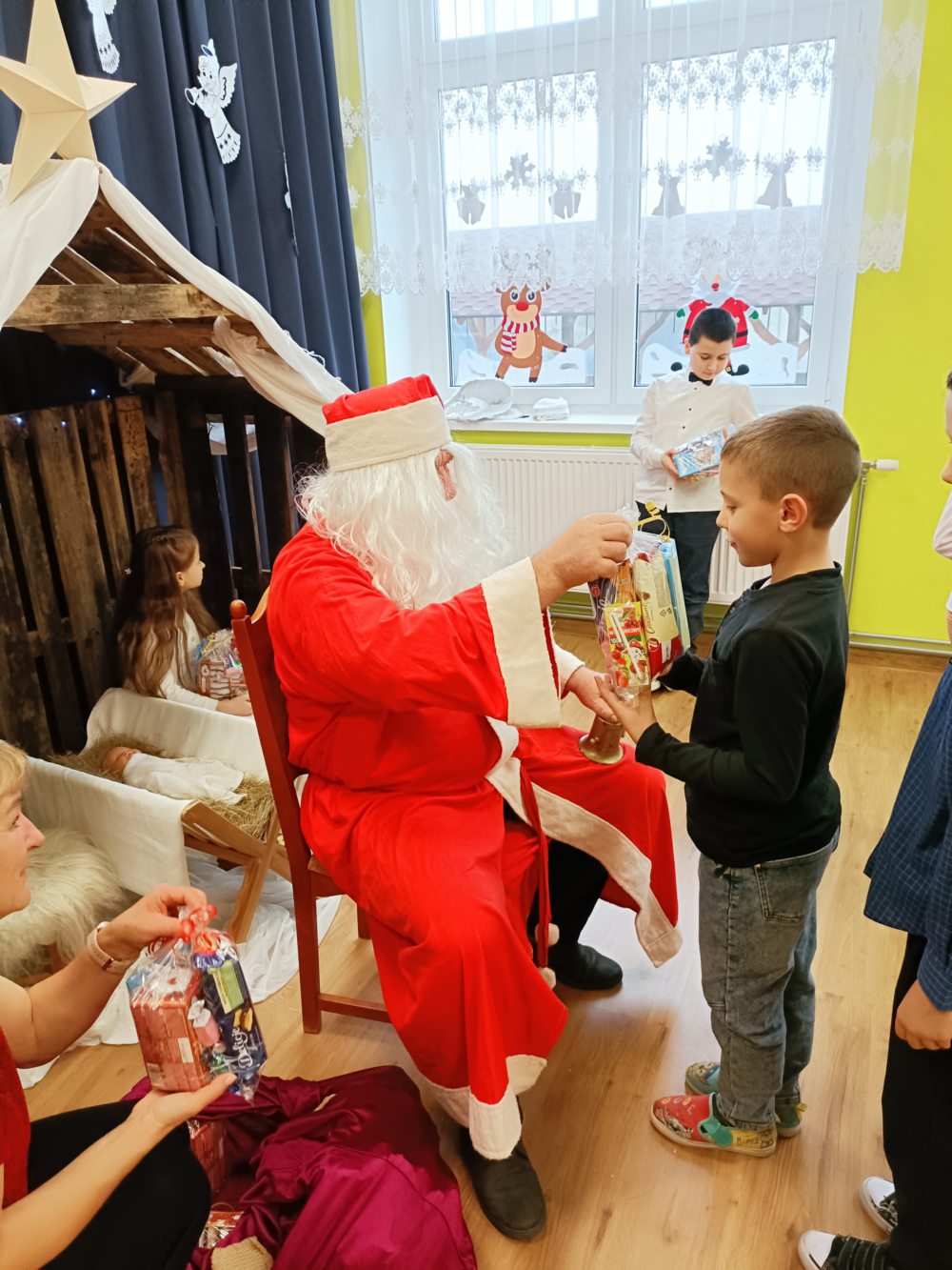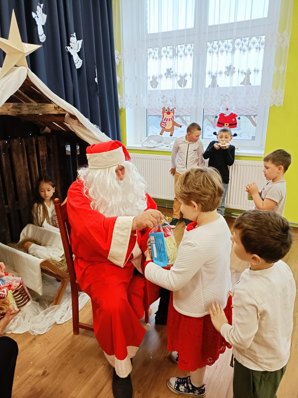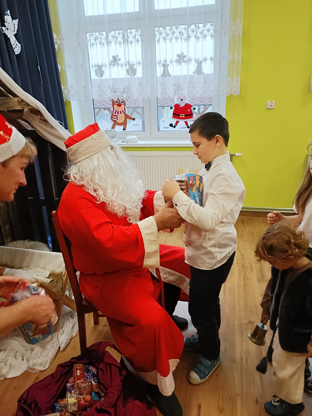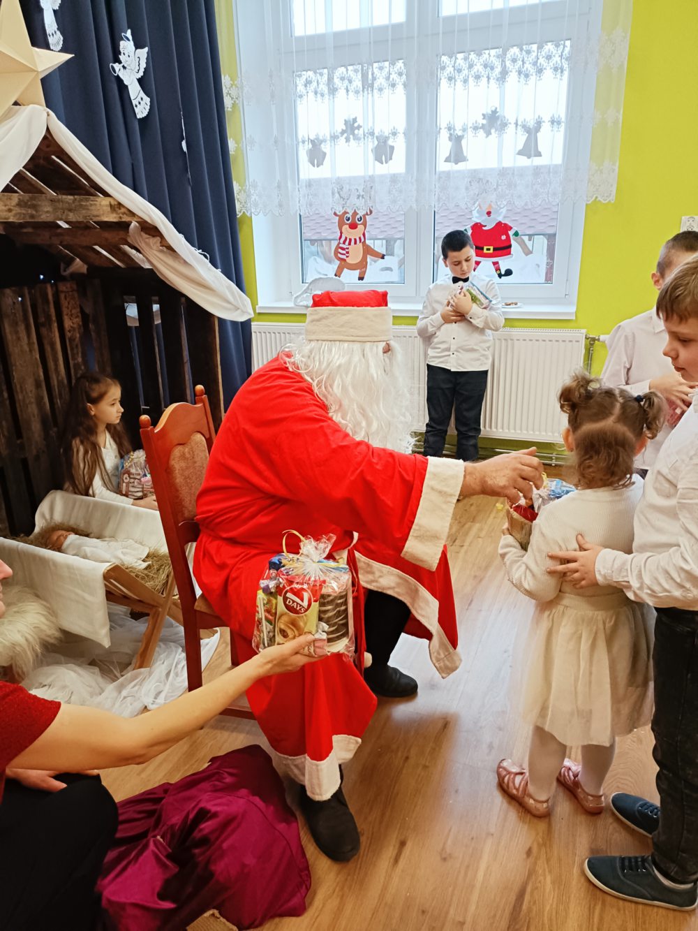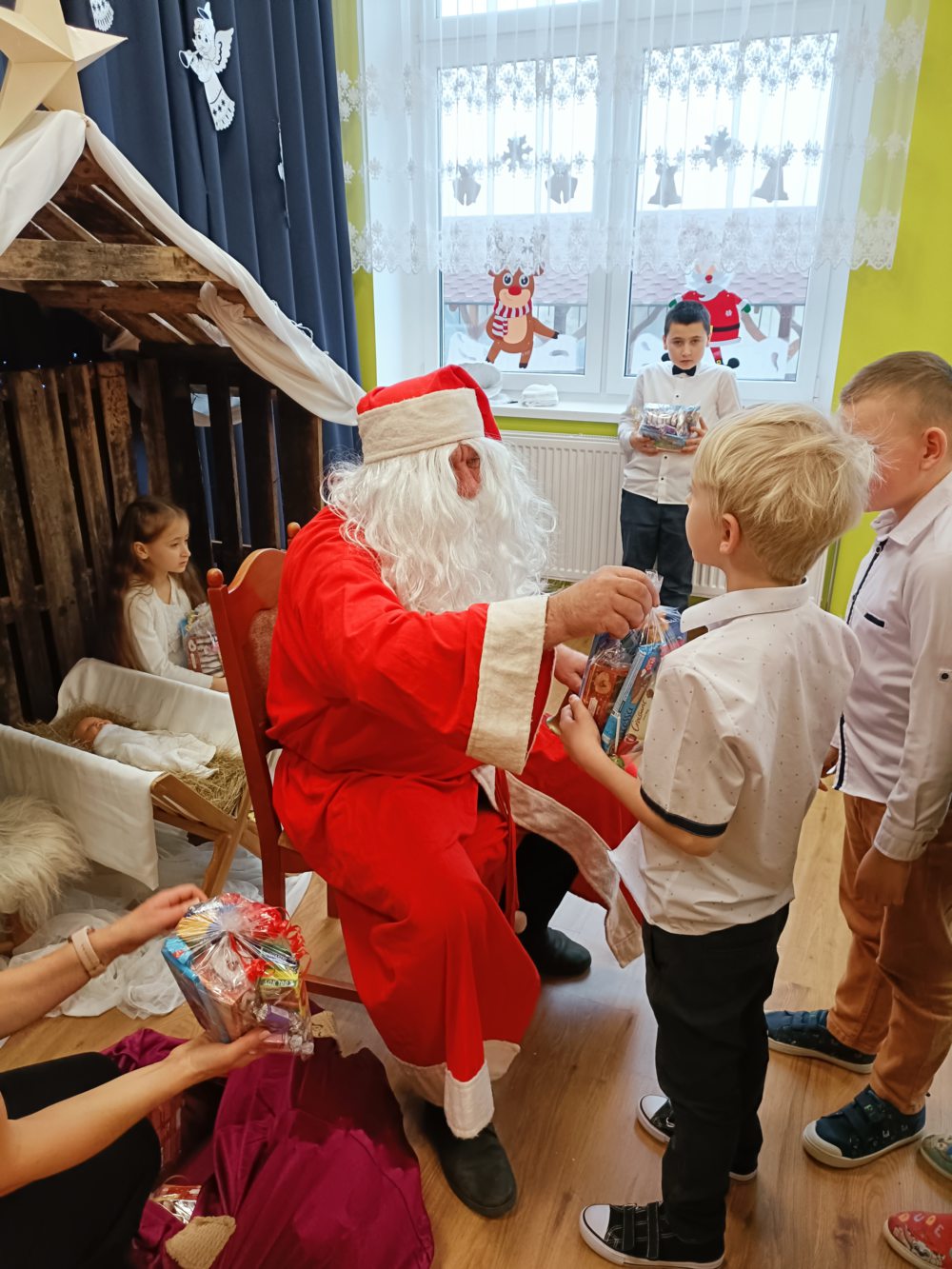 W naszej szkole odbyły się wyjątkowe jasełka, na które zostali zaproszeni rodzice oraz goście. Sala była pięknie udekorowana, a nad szopką świeciła jasna gwiazda betlejemska, wprowadzając wszystkich w świąteczny nastrój. Przedstawienie było bardzo piękne i wzruszające. Następnie na scenie pojawiły się anioły, które wykonały delikatny i pełen wdzięku taniec. Ich białe stroje oraz spokojna muzyka sprawiły, że publiczność z zapartym tchem oglądała występ. Rodzice z dumą i radością obserwowali swoje dzieci, nagradzając je gromkimi brawami. W dalszej części jasełek pojawił się Gwiazdor, który wniósł wiele radości i uśmiechu oraz przypomniał wszystkim o tym, co w świętach jest najważniejsze – miłości, dobroci i wspólnym byciu razem.