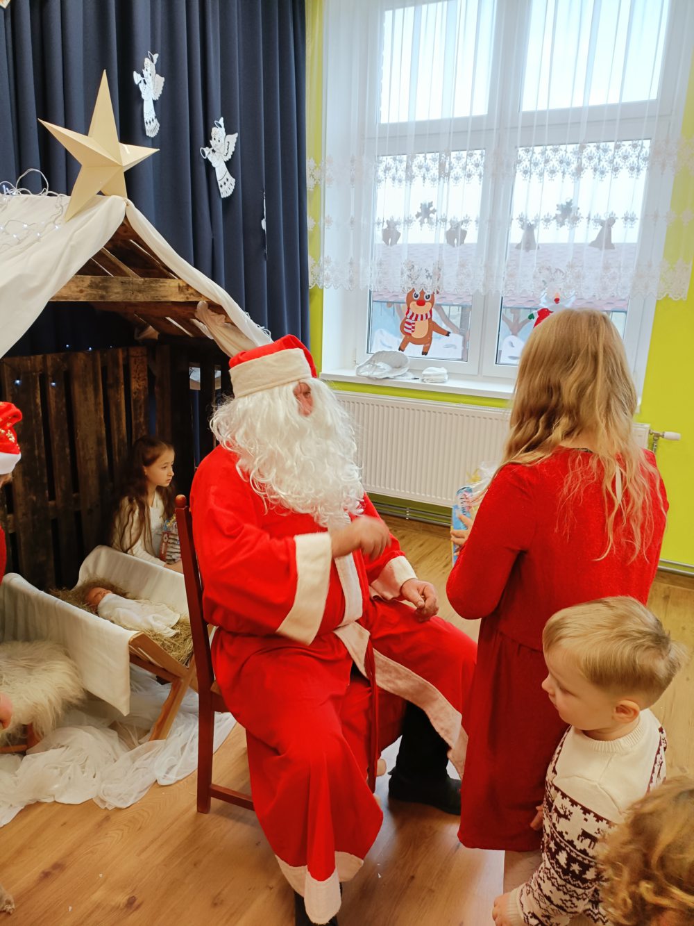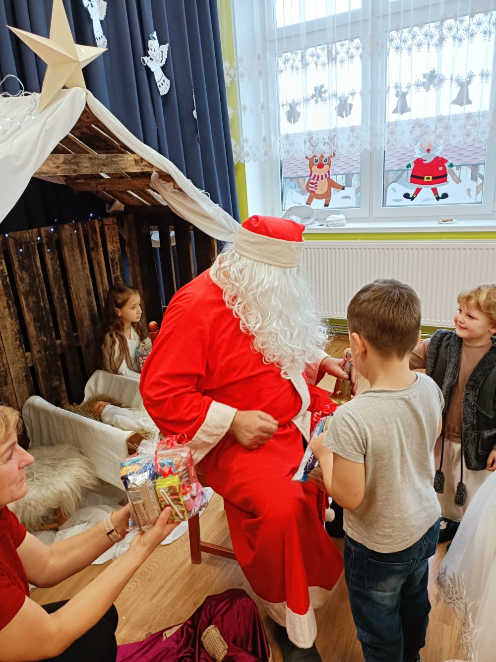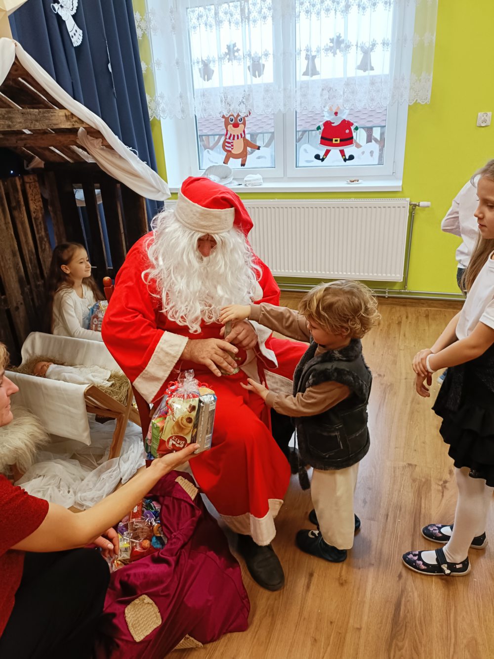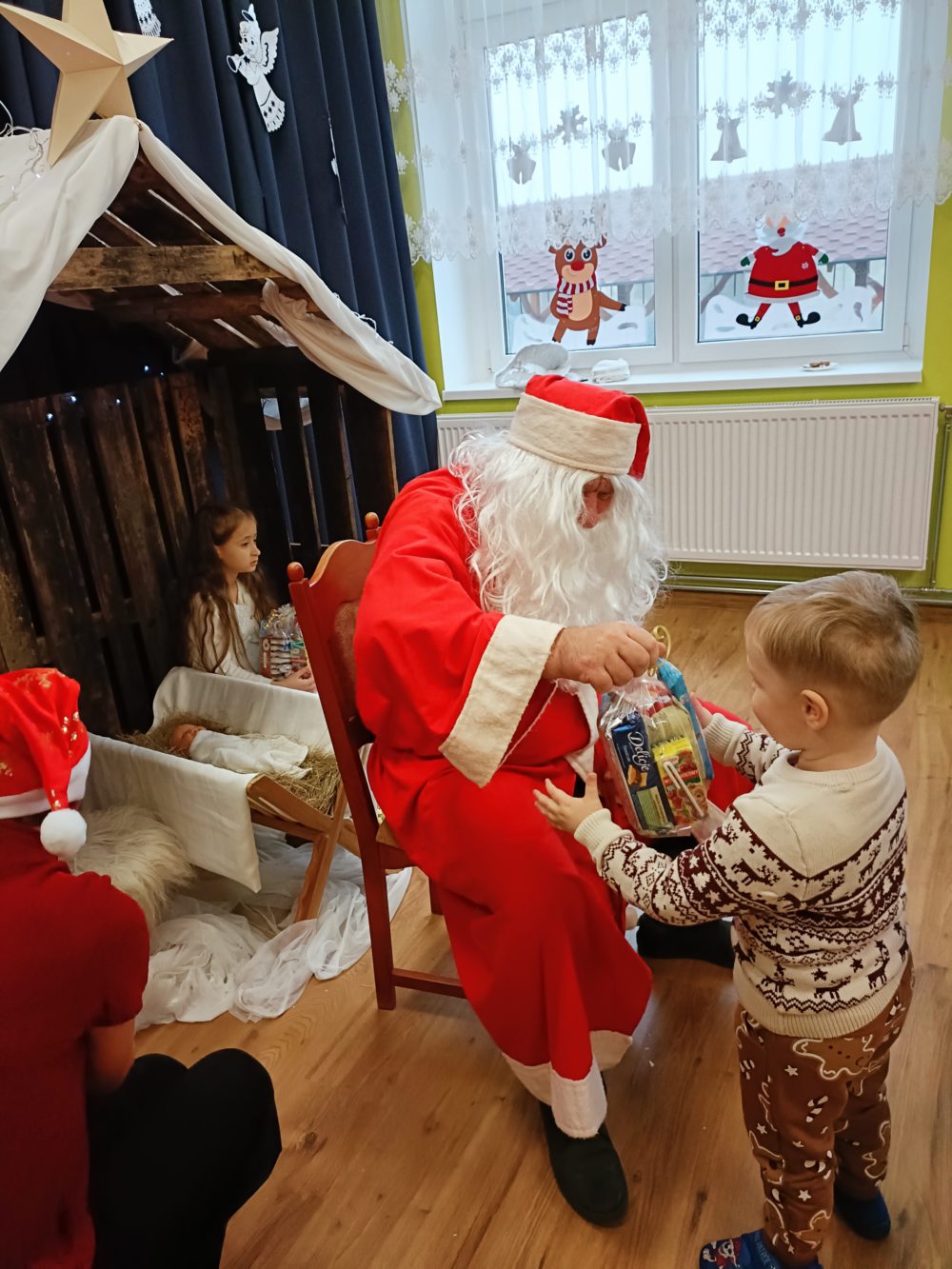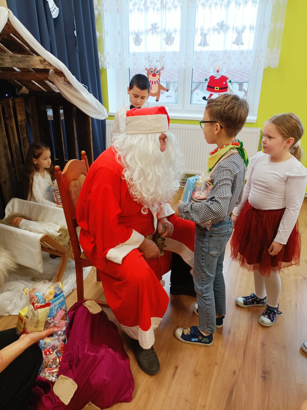 W naszej szkole odbyły się wyjątkowe jasełka, na które zostali zaproszeni rodzice oraz goście. Sala była pięknie udekorowana, a nad szopką świeciła jasna gwiazda betlejemska, wprowadzając wszystkich w świąteczny nastrój. Przedstawienie było bardzo piękne i wzruszające. Następnie na scenie pojawiły się anioły, które wykonały delikatny i pełen wdzięku taniec. Ich białe stroje oraz spokojna muzyka sprawiły, że publiczność z zapartym tchem oglądała występ. Rodzice z dumą i radością obserwowali swoje dzieci, nagradzając je gromkimi brawami. W dalszej części jasełek pojawił się Gwiazdor, który wniósł wiele radości i uśmiechu oraz przypomniał wszystkim o tym, co w świętach jest najważniejsze – miłości, dobroci i wspólnym byciu razem.