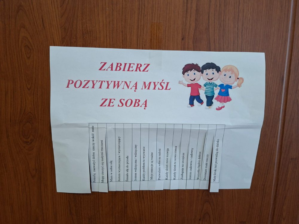 Dzień Pozytywnego Myślenia był okazją do rozmów o emocjach oraz przypomnieniem, że pozytywne nastawienie pomaga pokonywać trudności i cieszyć się małymi sukcesami. Uśmiech, dobre słowo i wiara w siebie to wartości, które warto pielęgnować każdego dnia.