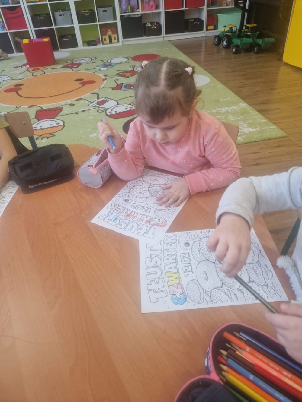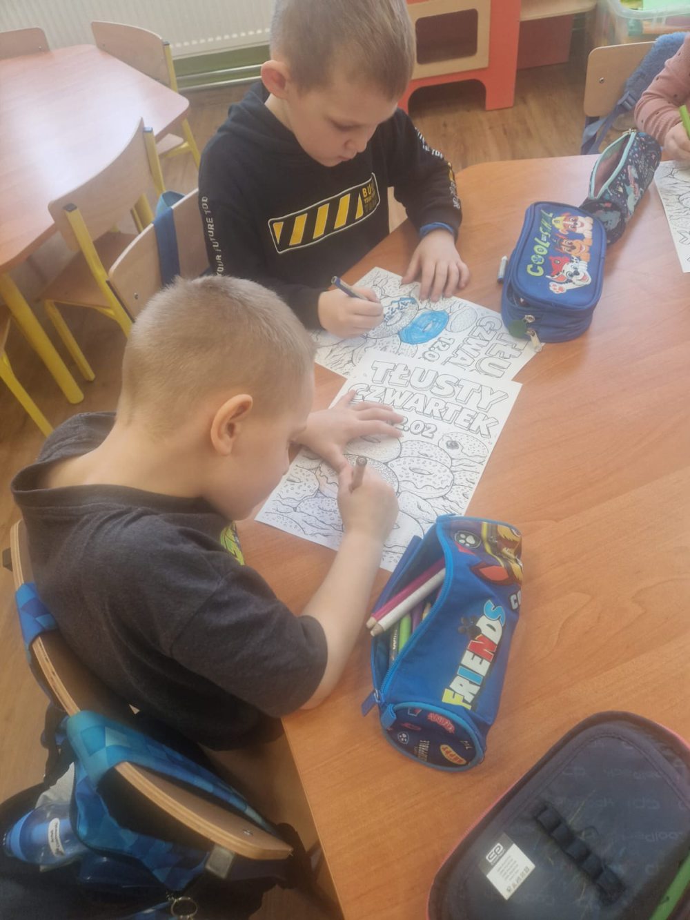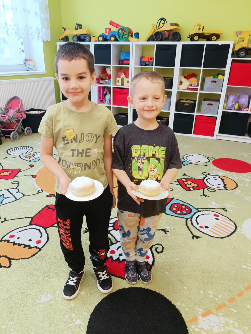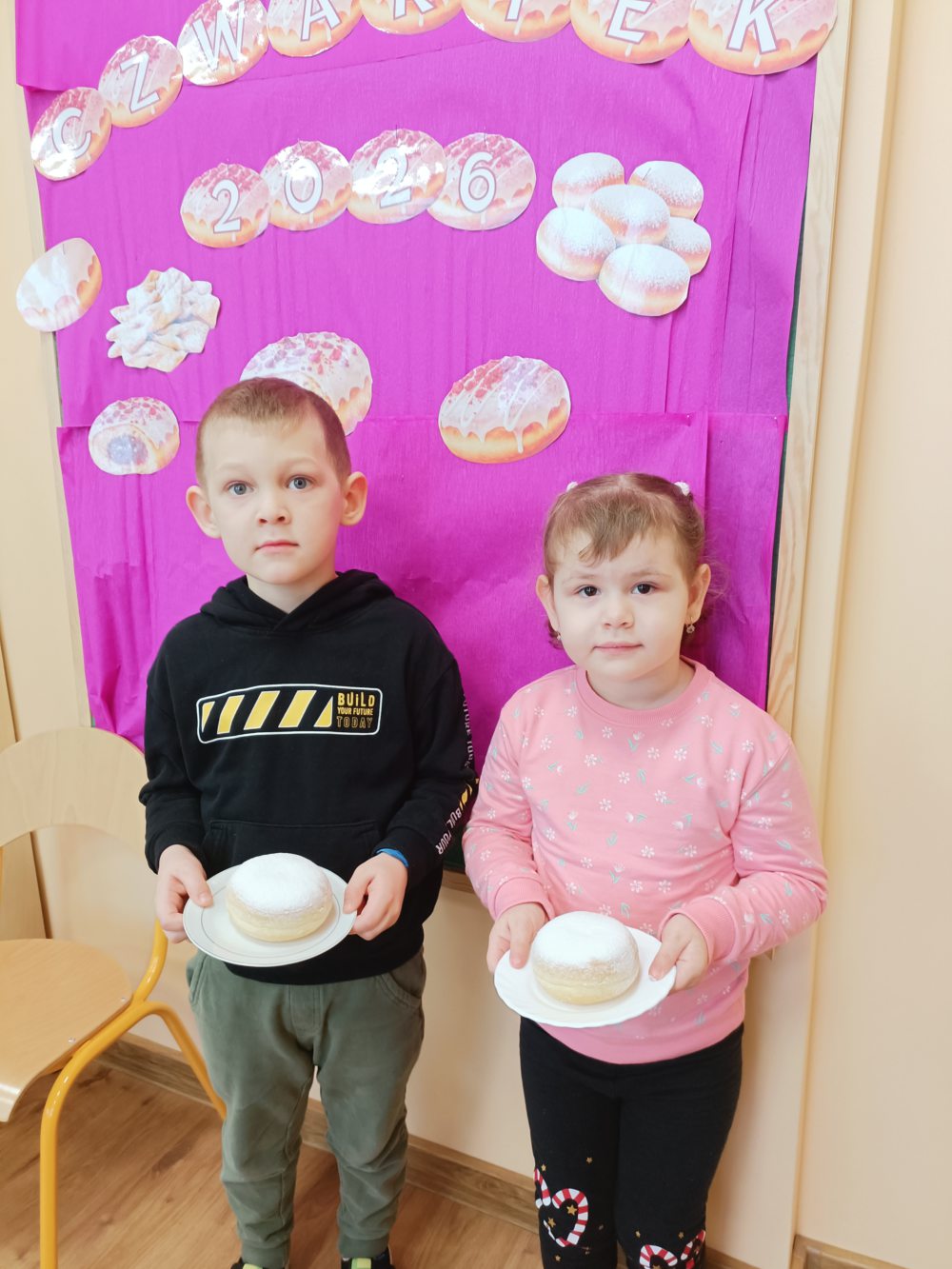 Tłusty Czwartek to jeden z najsłodszych dni w roku! W naszej sali nie mogło zabraknąć radosnej atmosfery, ciekawych zajęć oraz oczywiście… pysznych pączków. Dzieci dowiedziały się, skąd wzięła się tradycja Tłustego Czwartku oraz dlaczego właśnie tego dnia zajadamy się pączkami. Rozmawialiśmy o dawnych zwyczajach i o tym, jak świętuje się ten dzień w Polsce. Dzieci z dużym zainteresowaniem słuchały opowieści i dzieliły się swoimi doświadczeniami. Nie zabrakło także aktywności ruchowych. Były wesołe zabawy i ćwiczenia, które dostarczyły dzieciom dużo radości i uśmiechu. Wspólna zabawa sprzyjała integracji oraz budowaniu pozytywnych relacji między dziećmi. Podczas zajęć plastycznych dzieci wykonały własne pączki. Wykorzystały różne materiały, tworząc puszyste „lukrowane” wypieki. Każda praca była wyjątkowa i pełna kreatywności. Na zakończenie dnia przyszedł czas na najbardziej wyczekiwany moment, degustację prawdziwych pączków. Dzieci z apetytem zajadały słodki przysmak, pamiętając o zasadach kulturalnego zachowania przy stole. To był dzień pełen radości, uśmiechu i słodkich chwil.